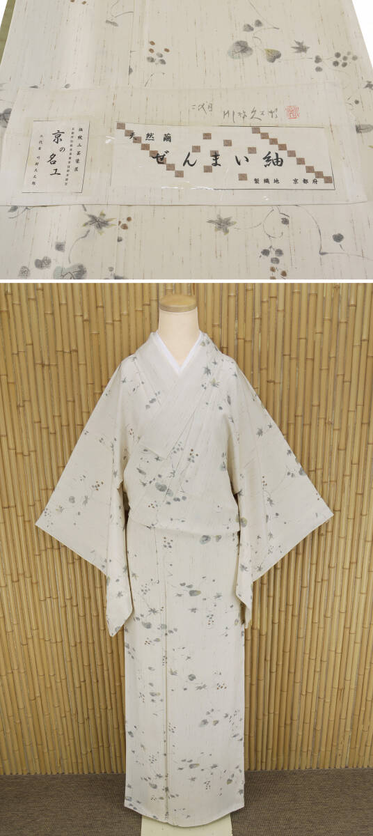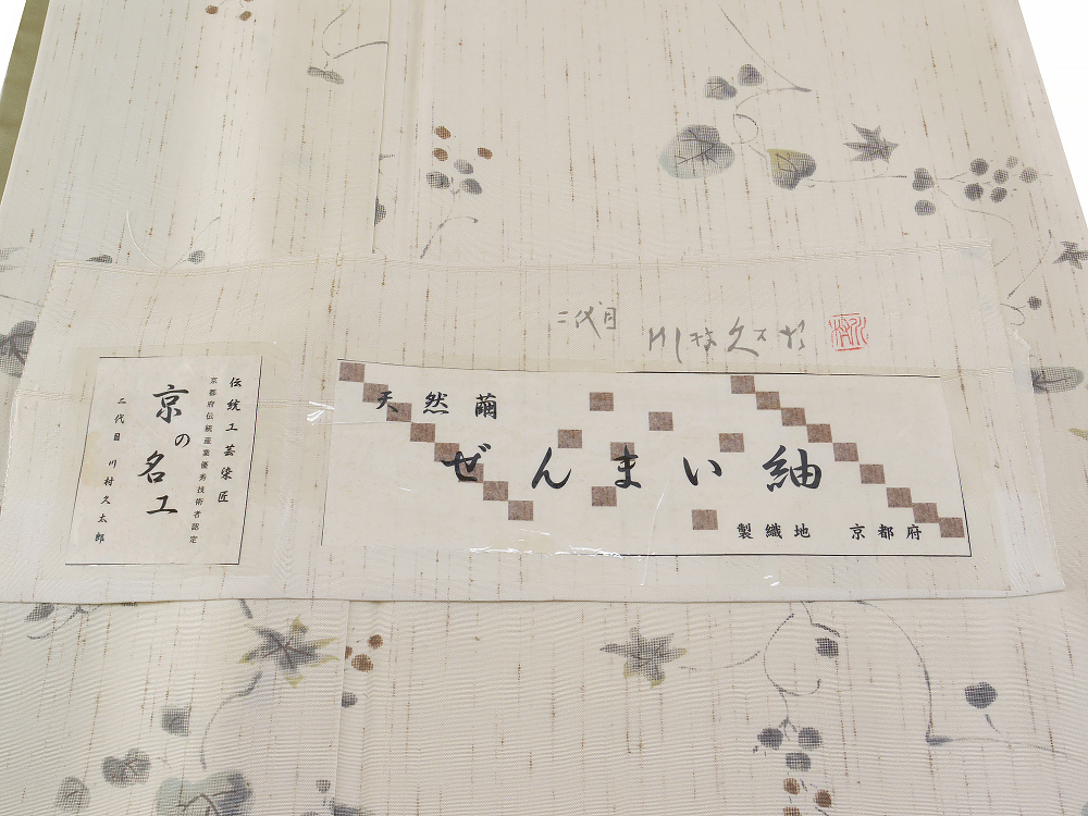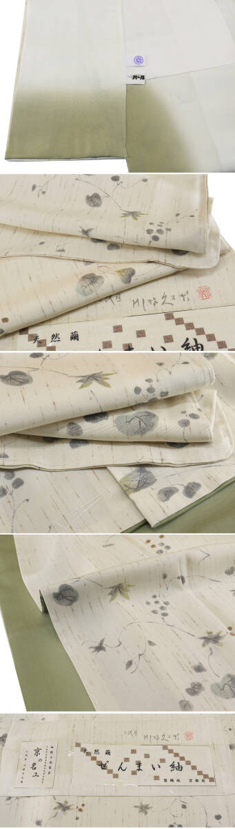 正絹 ●―――――――――――― コメント ――――――――――――― 【京の名工 二代目 川村久太郎】特撰創作友禅染小紋 天然繭 ぜんまい紬 日本絹 端布有 パールトン加工 躾糸付未着用 京の名工川村久太郎氏の自由な発想で創作された 川村久太郎のお品は、おしゃれ着物愛好家の方に親しまれているブランドです。 京染の中でも洒落ものでは右にでる者がいないといわれる、 伝統工芸染匠・京都府伝統産業優秀技術者の 二代目・川村久太郎氏による染が見事に施された逸品となります。 独特な世界観で表現される染めは和の心を引き出し、お洒落さと上品さが溢れております。 ぜんまい紬の軽やかな着心地は、 贅沢なおしゃれ心を存分に満たしてくれることと思います。 ちょっとしたお集まりや観劇など、いろいろな場面でご活用いただけ末永くお召し頂けることでしょう。 洗練された大人女性の上質な洒落着物。 どうぞお見逃しなく! お色柄共に 上品で女性らしさ感じられる 素敵な一枚です。 【京の名工 二代目 川村久太郎】の ワンランク上の逸品。 お目に留まりました方はこの機会に是非どうぞ。 着用年齢 ご年齢に関わらず永くお召しになって頂けるお品です。 合わせる帯や小物によっても印象が変わりますので、 お好みのコーディネートをお楽しみください。 躾糸付未着用の綺麗な美品のお品でございます。 現物は画像以上に色合い・生地共に素晴らしいものですので、この機会に是非ともどうぞ! 格安でお安く出品致します。即決は送料無料となっております。是非この機会にいかがでしょうか。 |