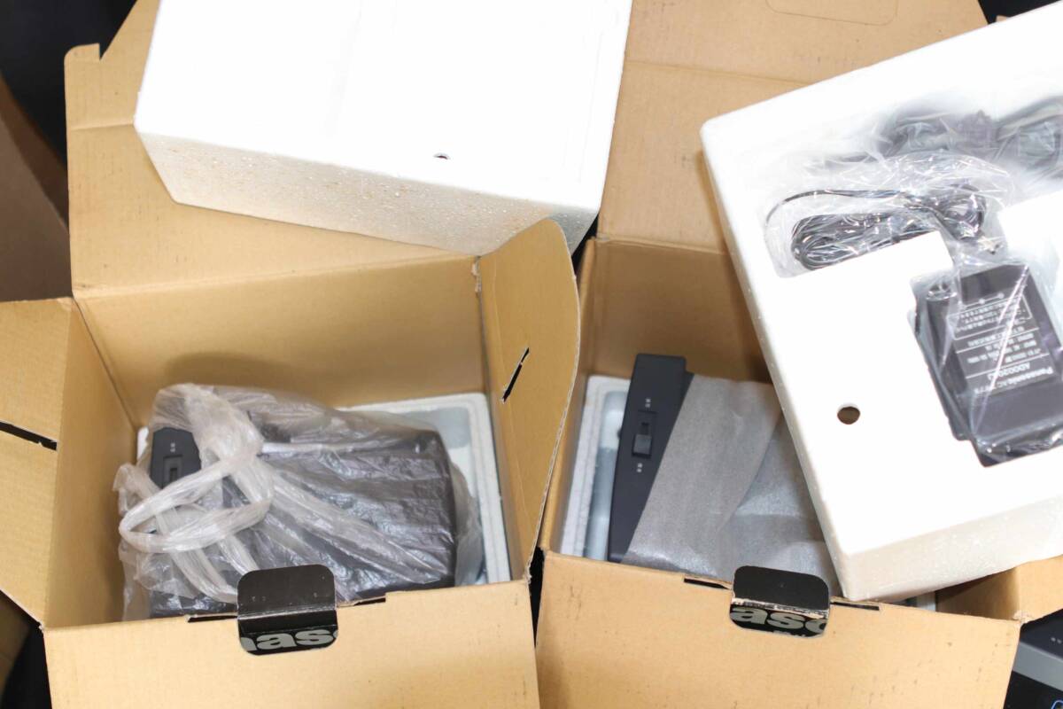1台は未使用、ACアダプター他付属です。モニタは全部で3台箱は2組です。