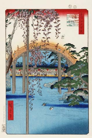 真作保証  東京都伝統工芸品  歌川広重  木版画 名所江戸百景   #065 亀戸天神境内    初版1856-58年頃    広重の世界を唸らせた名構図!