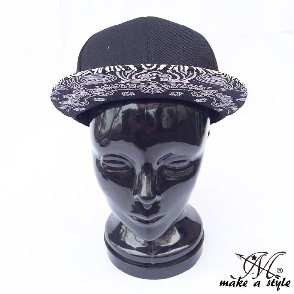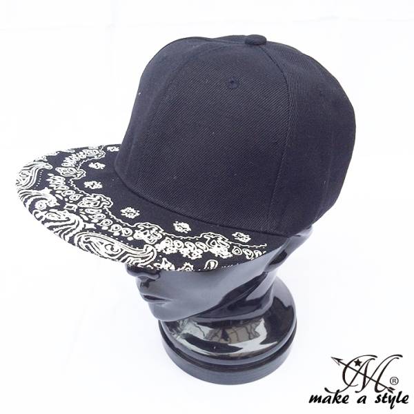 ■商品タイトル■ ツバ 総柄 ペイズリー プレーン スナップバック キャップ CAP ブラック 161