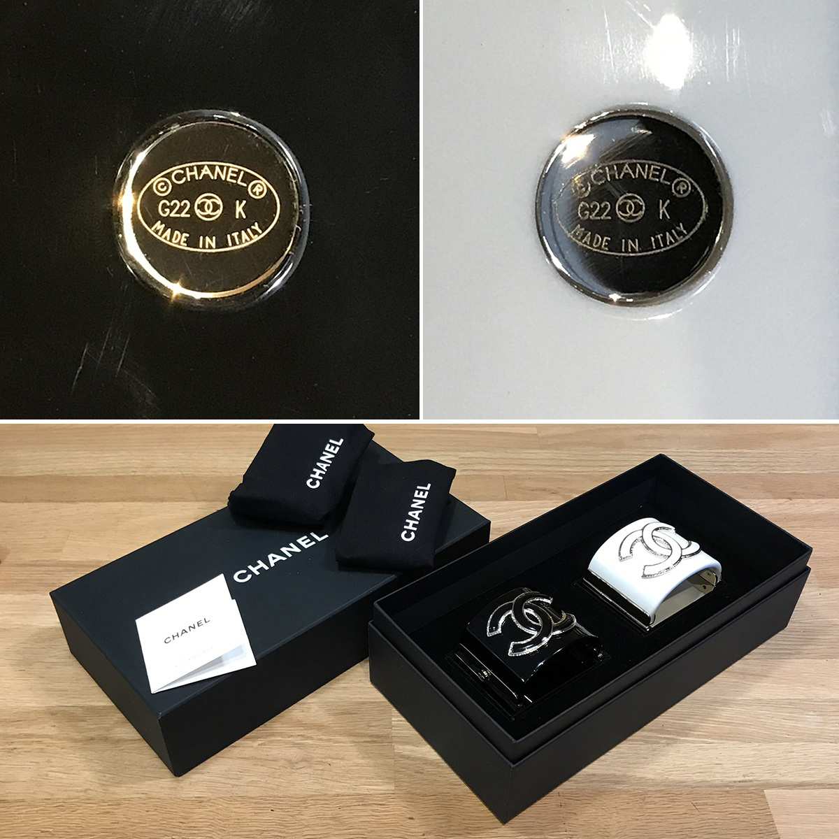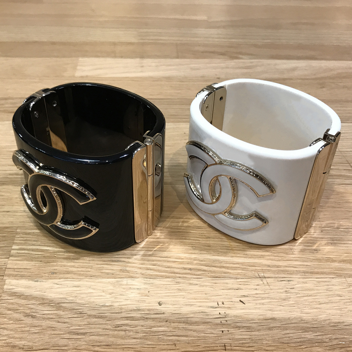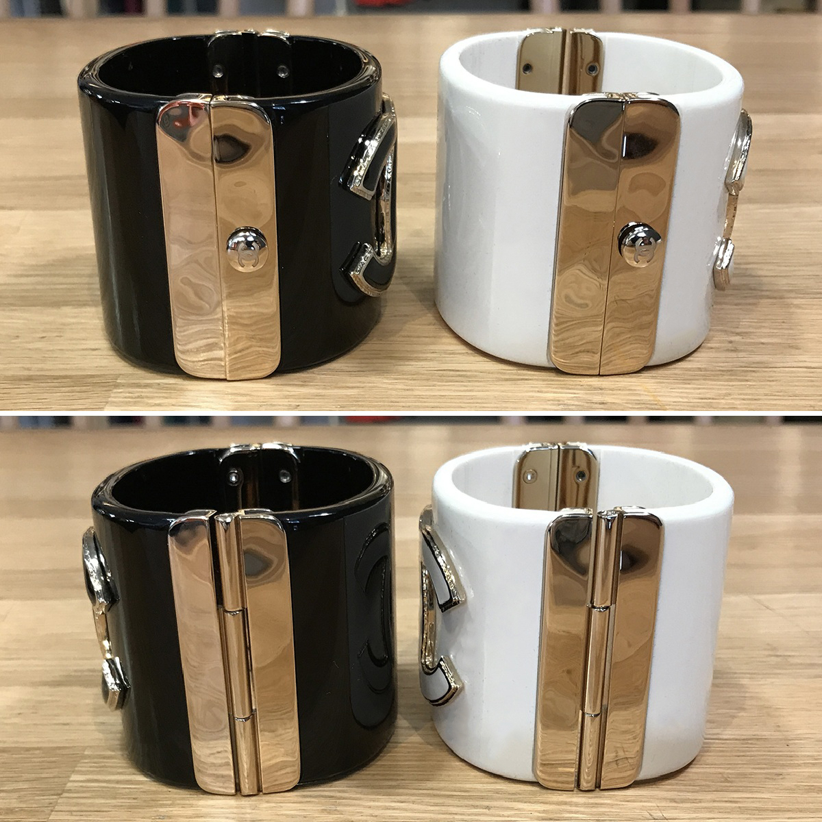 【新品未使用】 エルメス ココマーク バングル プラスティック メタル ブラック ホワイト ゴールド金具 G22K 2個セット ブレスレット 13614