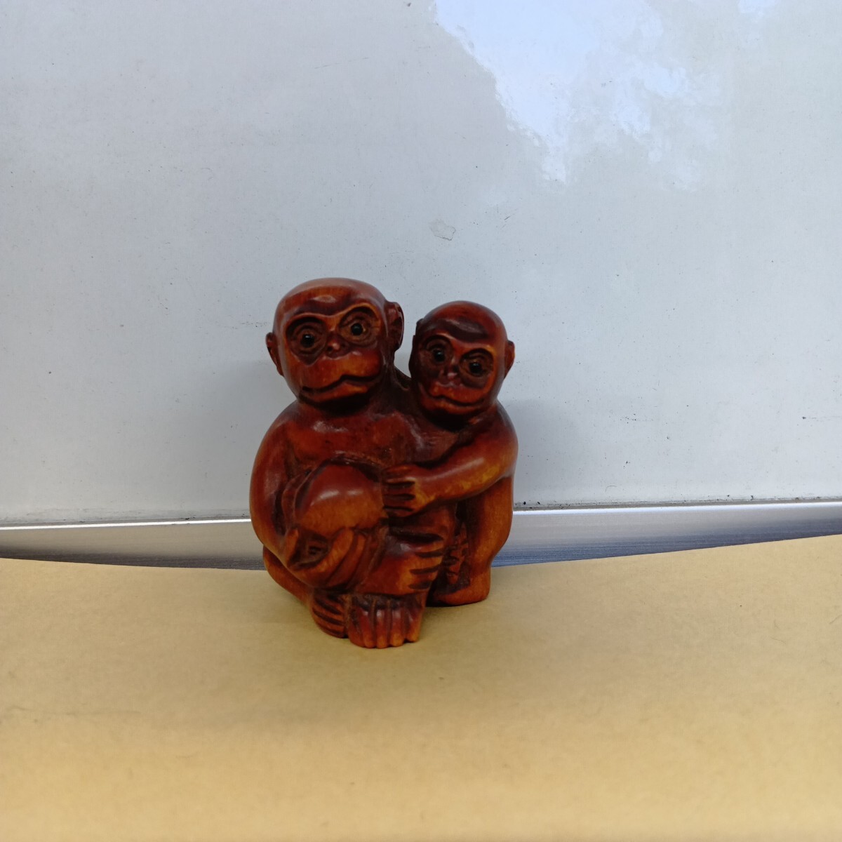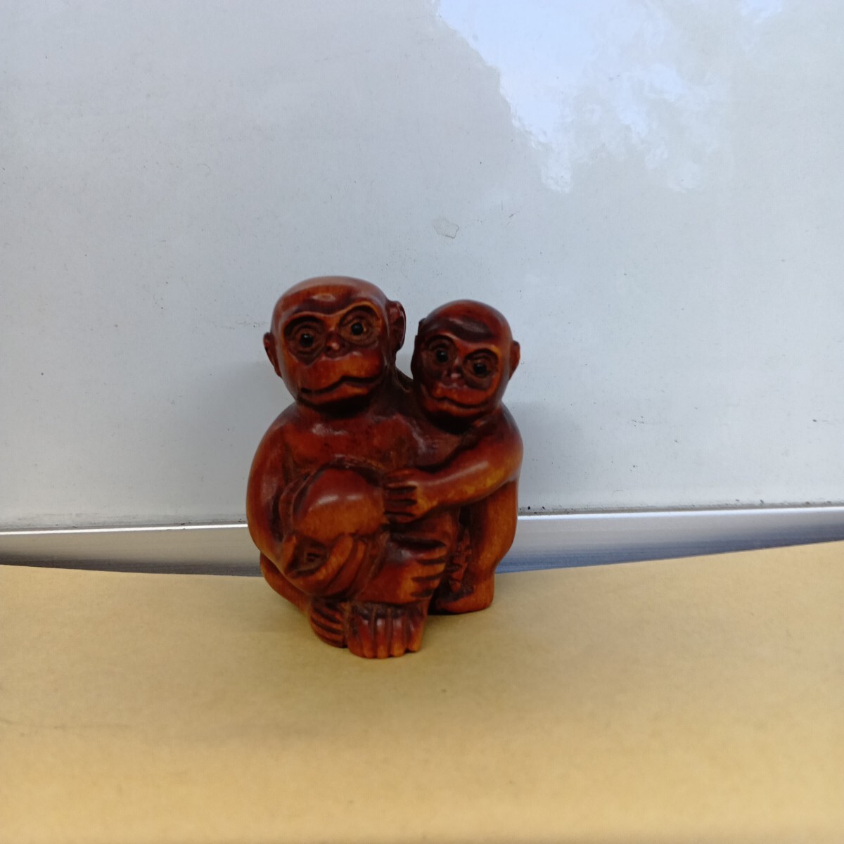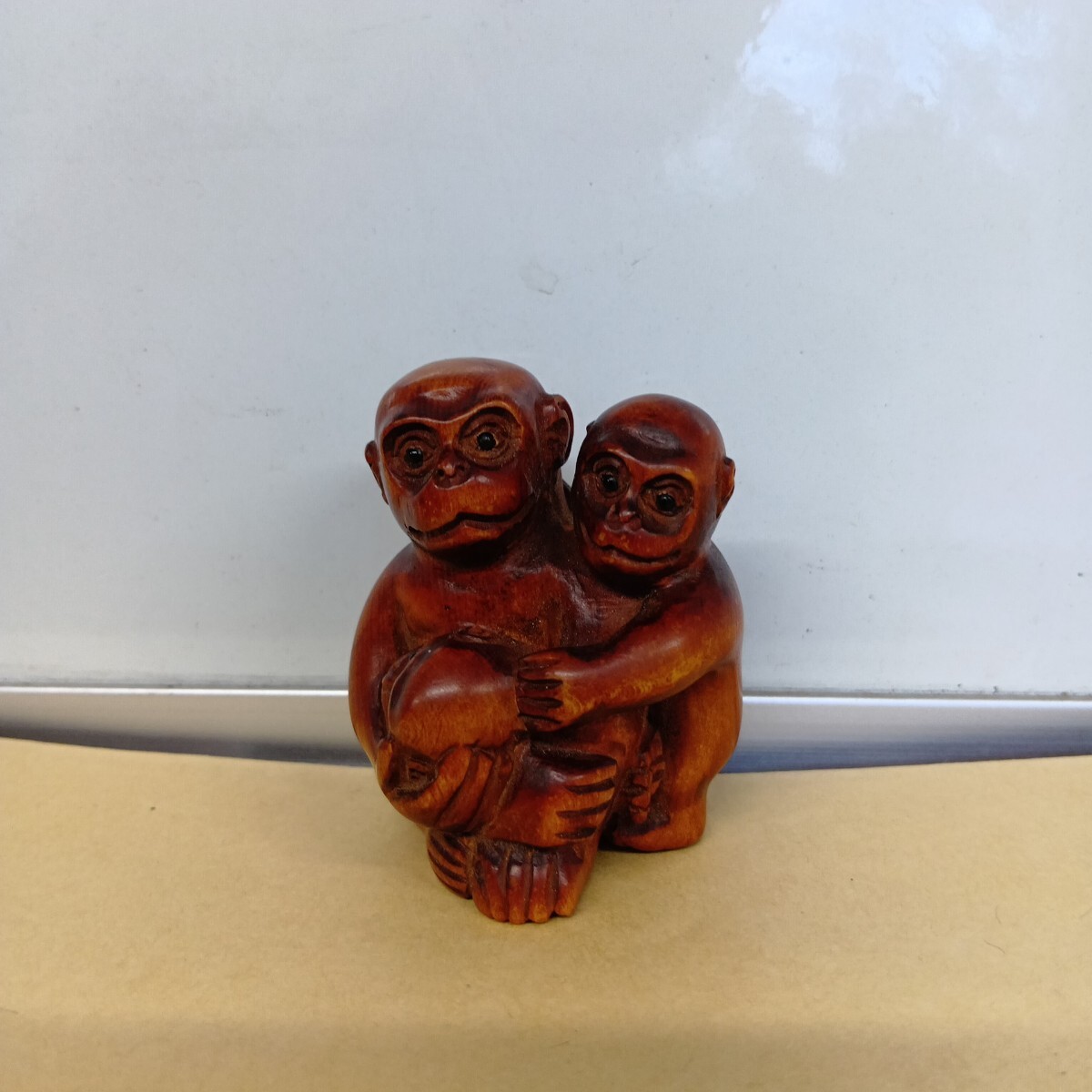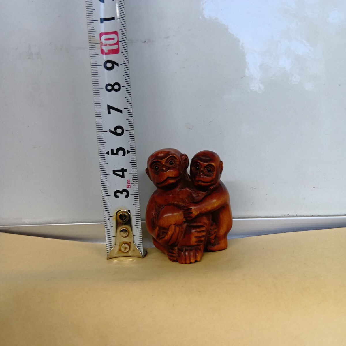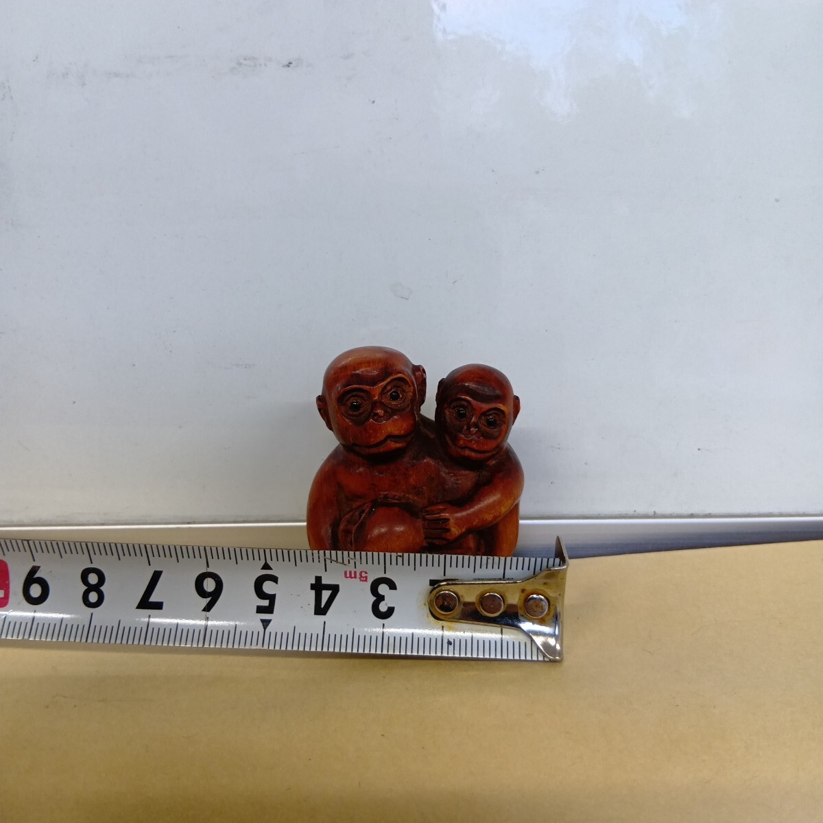 根付 三猿 4.9×4.1×3.7cm 在銘 柘植 木彫 良く画像を御覧頂き入札をお考え下さい