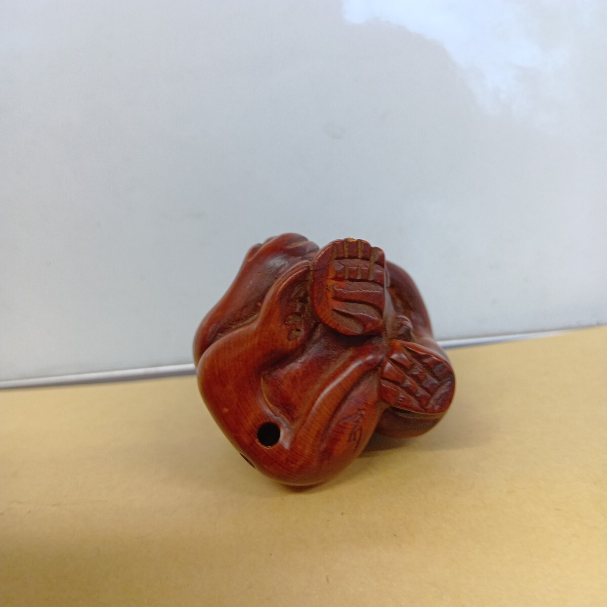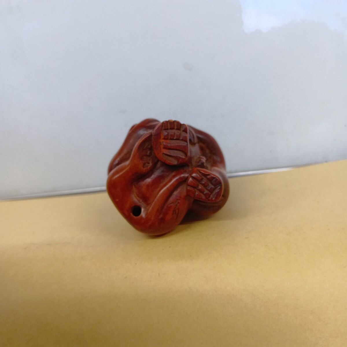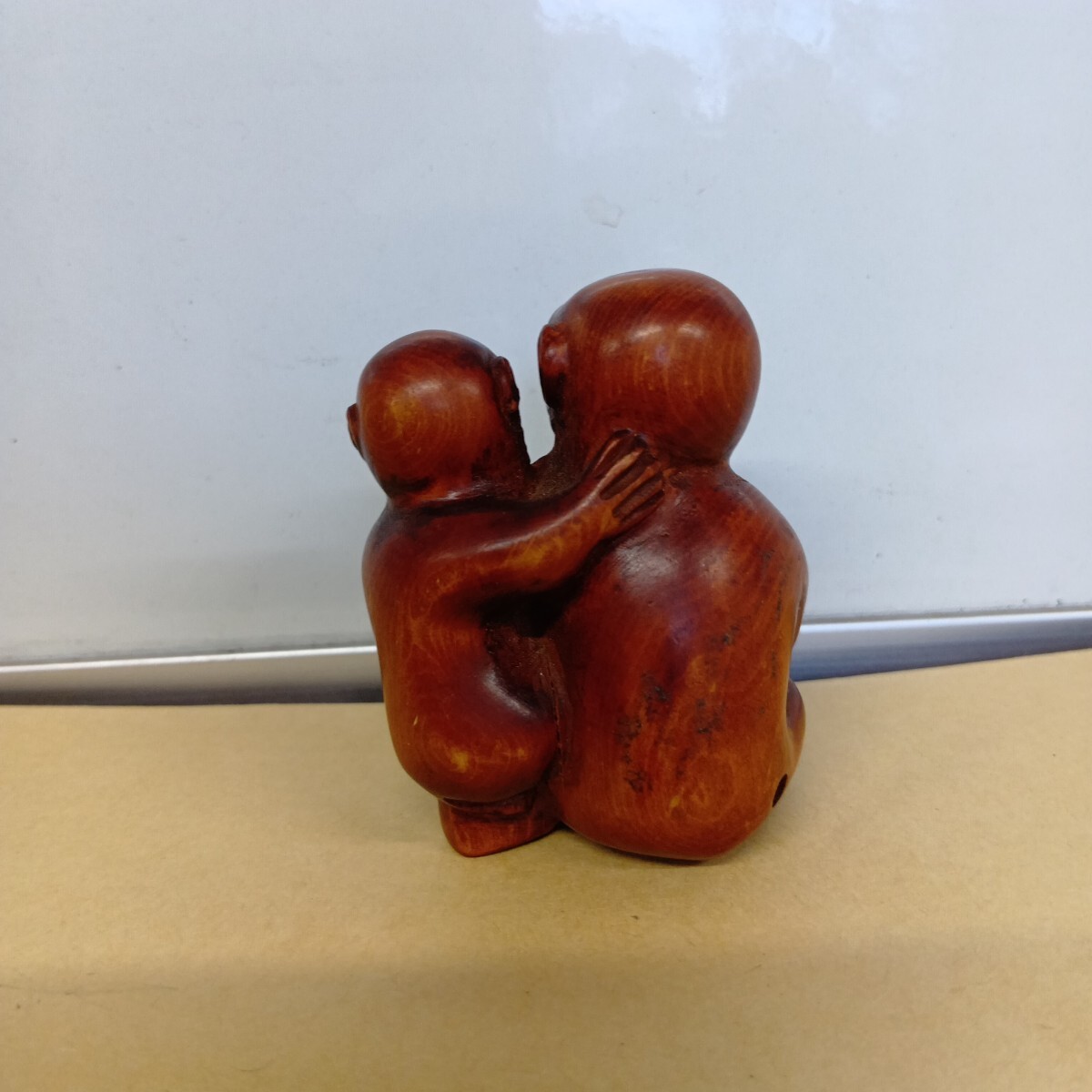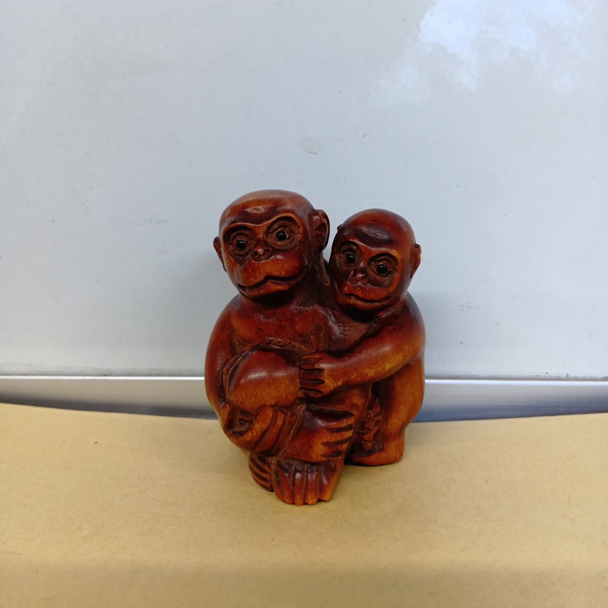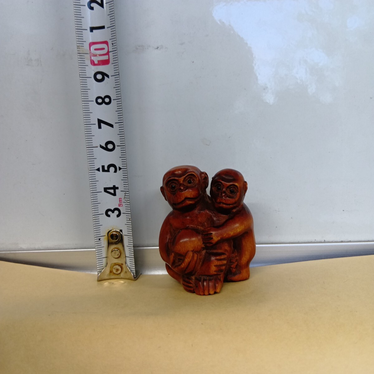 根付 三猿 4.9×4.1×3.7cm 在銘 柘植 木彫 良く画像を御覧頂き入札をお考え下さい