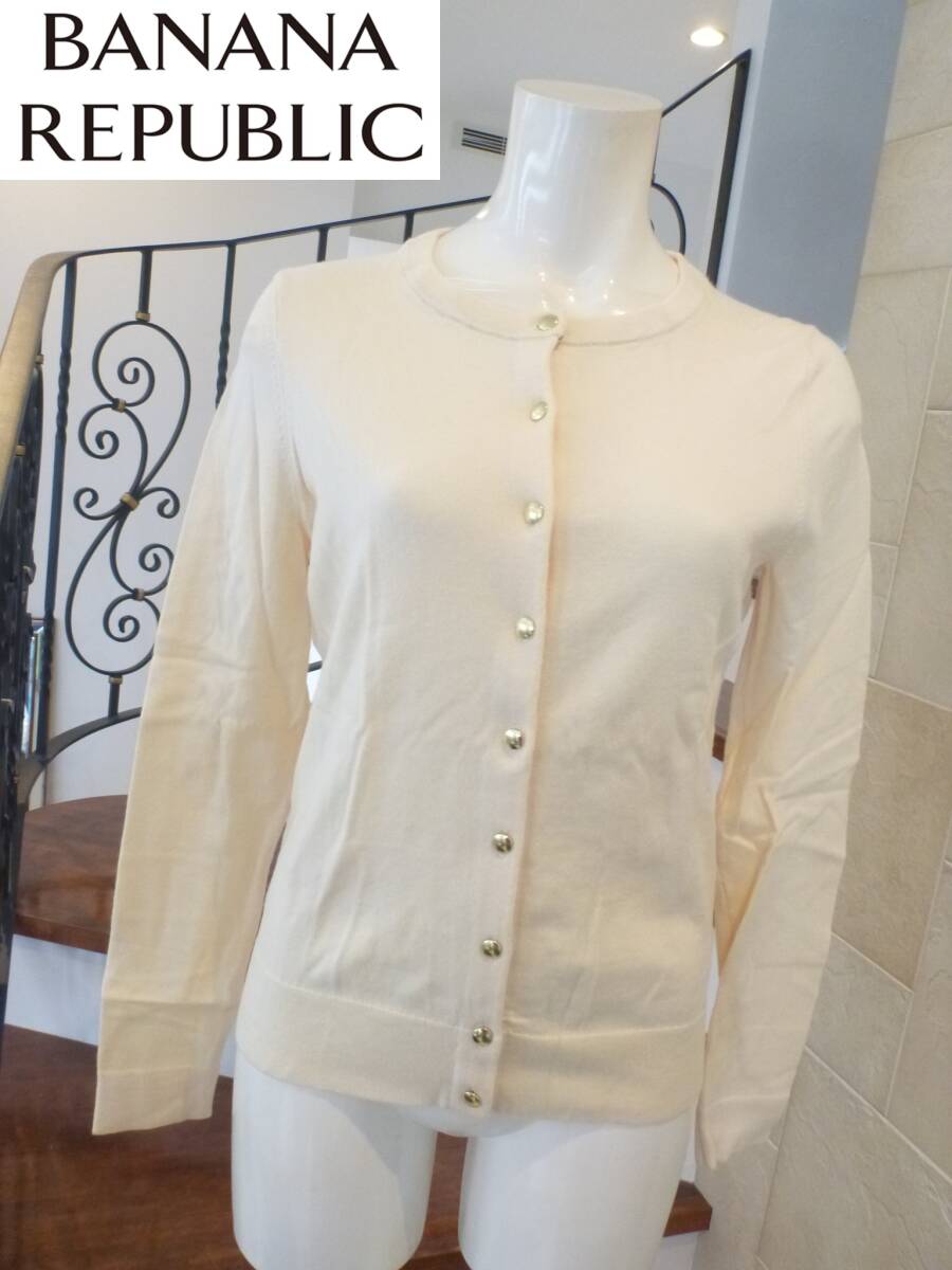 1.2万 超美品 BANANA REPUBLIC バナナリパブリック★オフホワイト×ゴールド系ボタン カーディガン S相当  xs