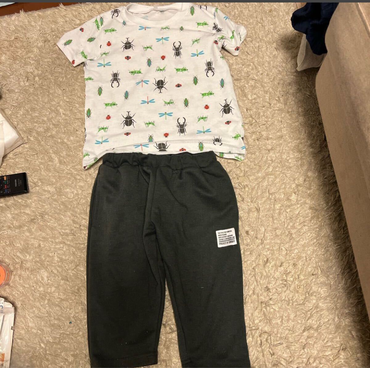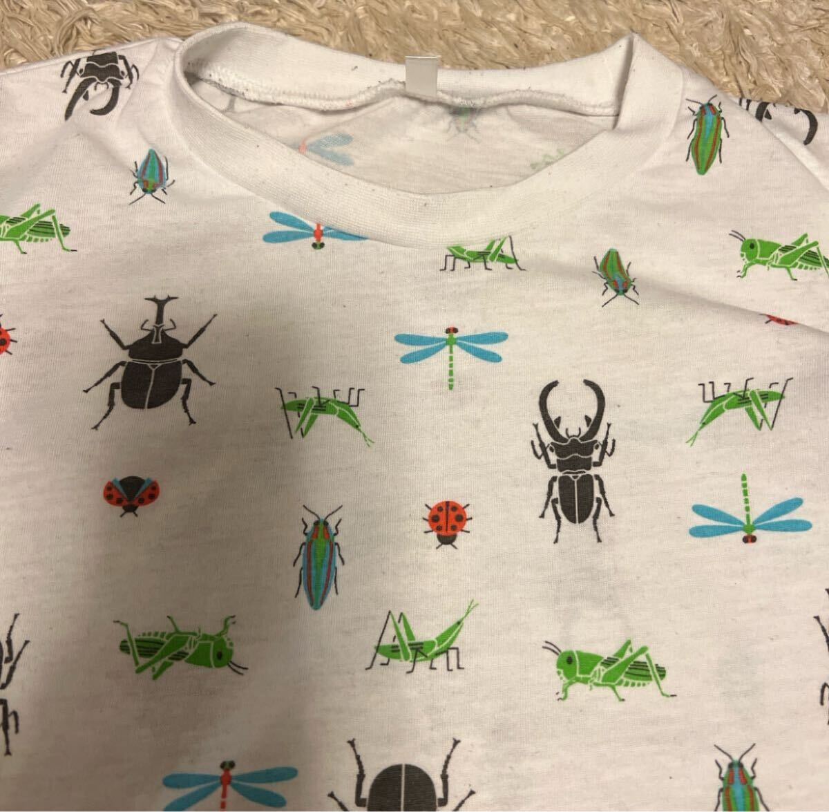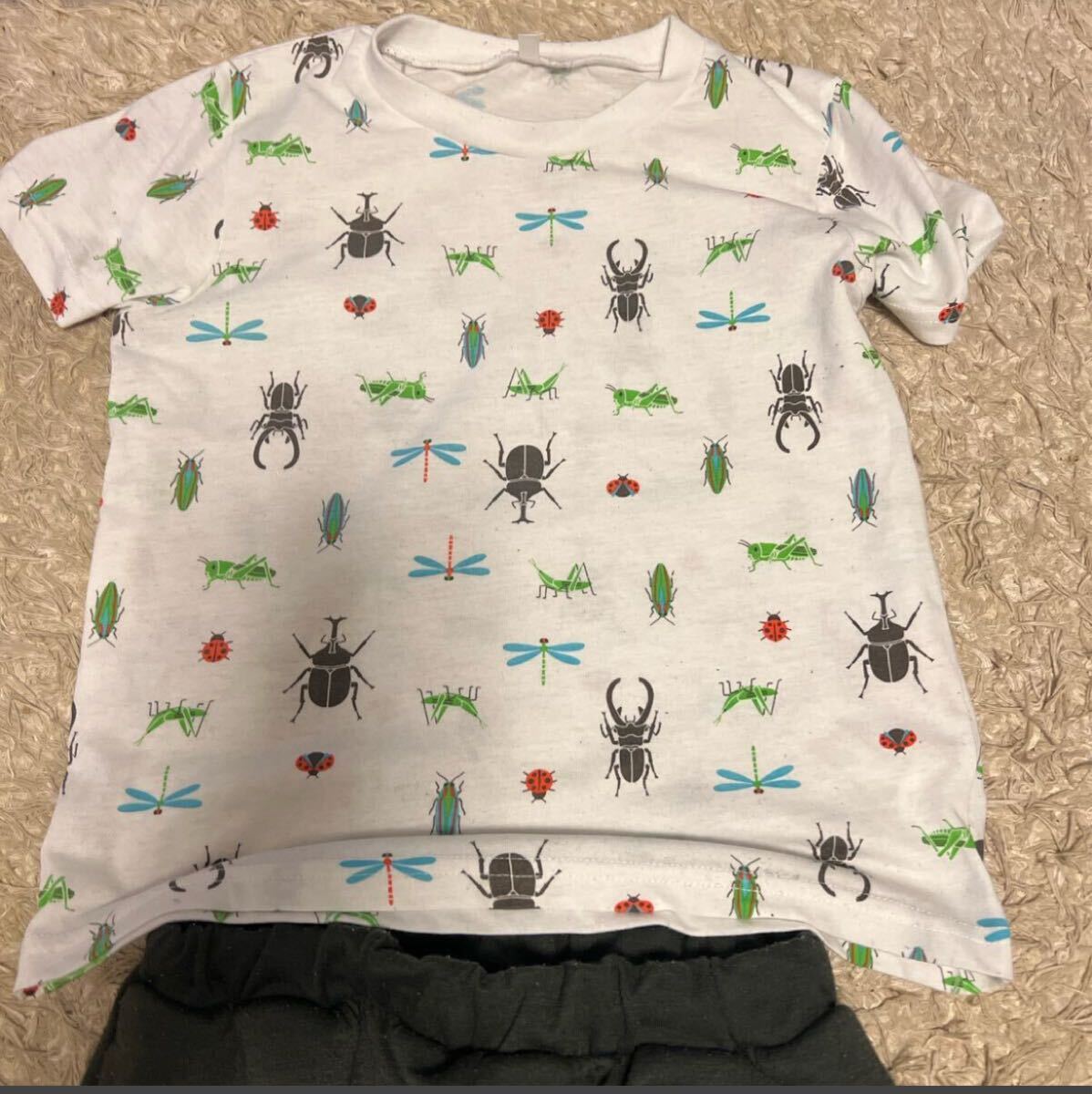 #西松屋他、キッズ130 半袖昆虫プリントTシャツ、ハーフパンツセット