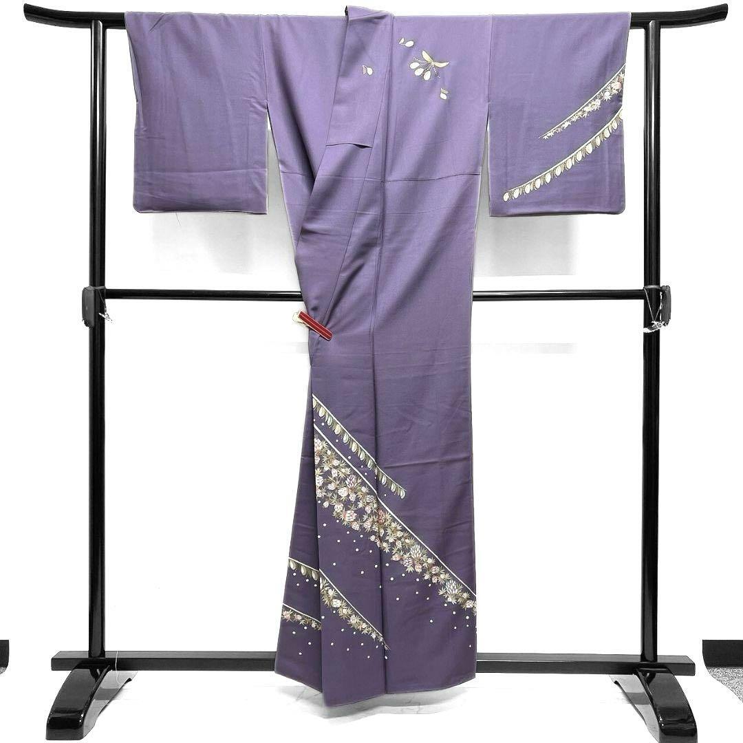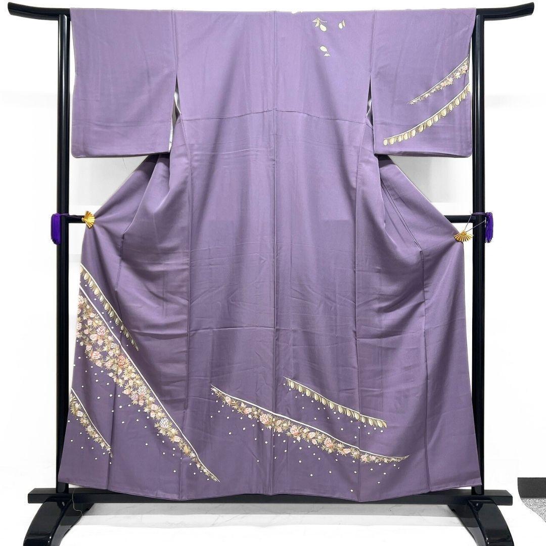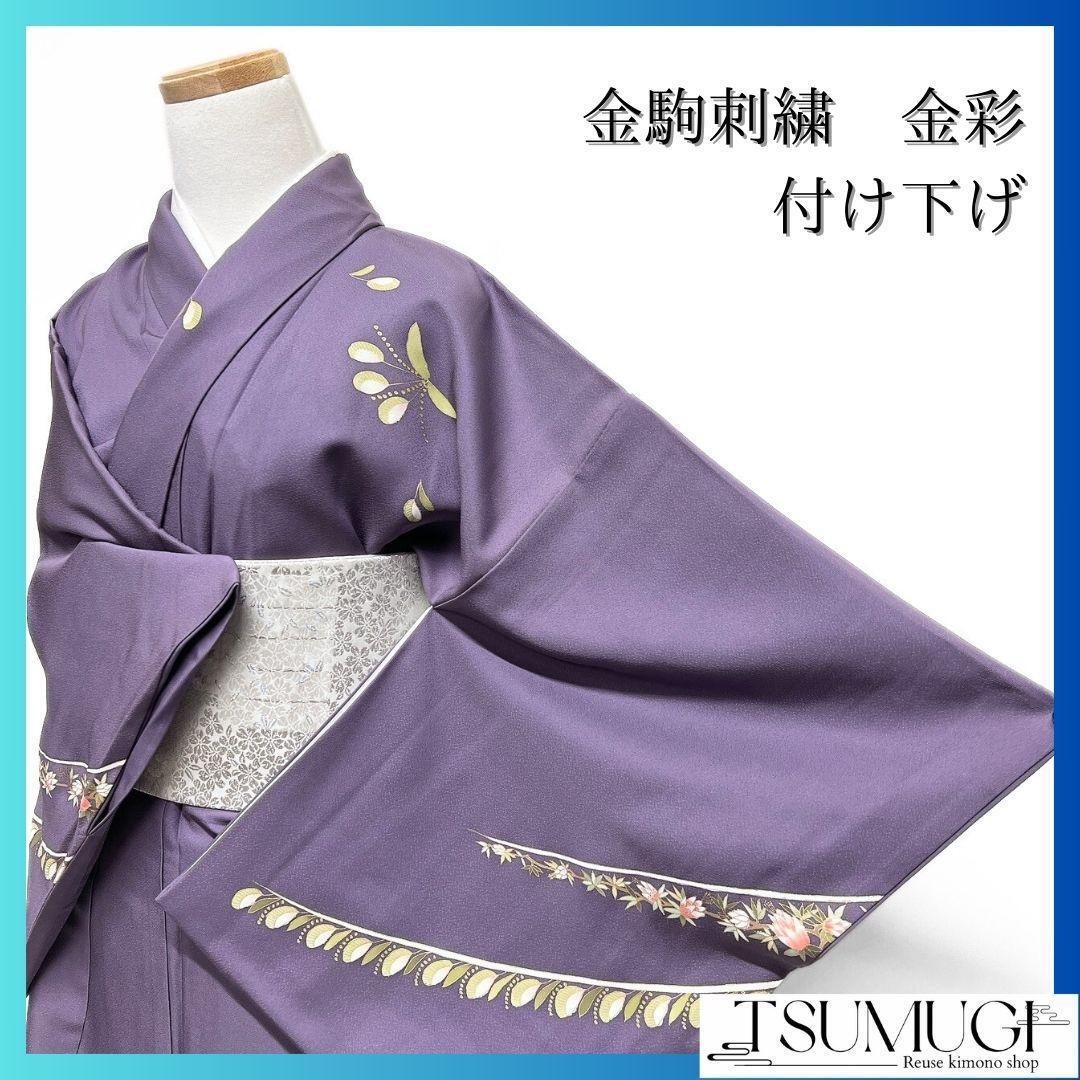 金駒刺繍 金彩 花 リーフ模様 付け下げ 着物 012a p