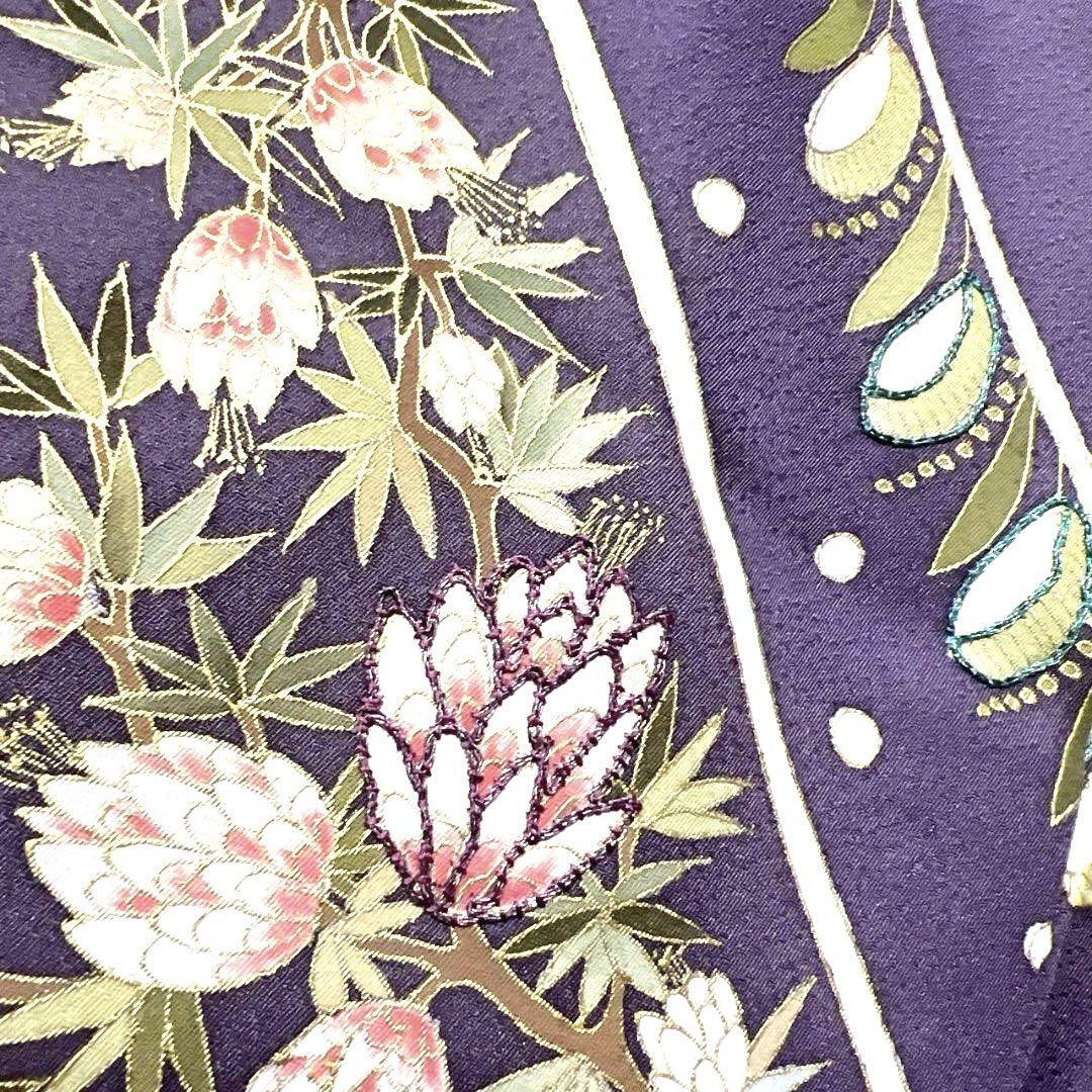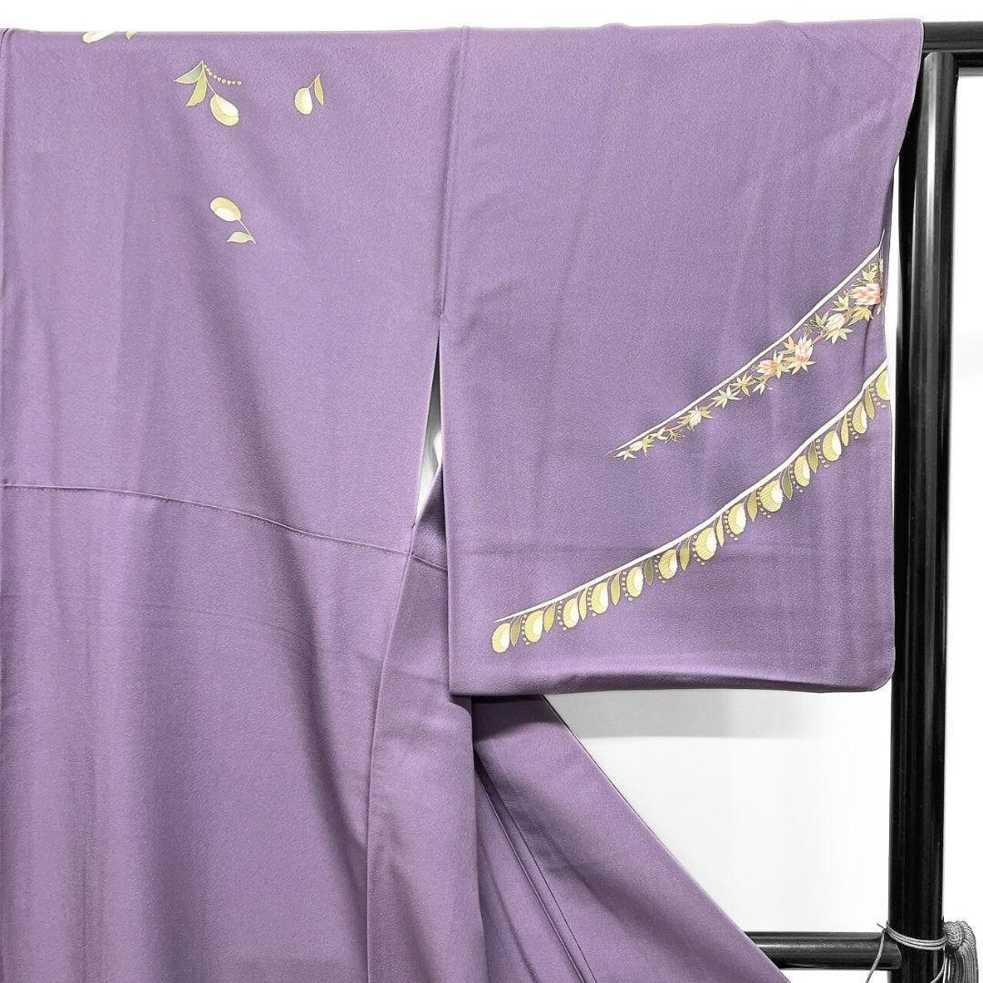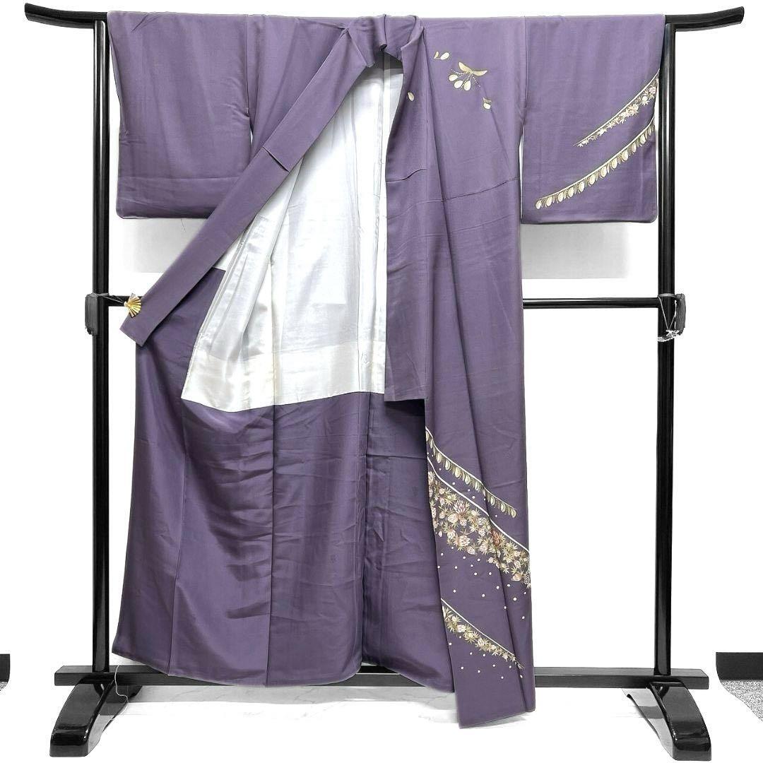 金駒刺繍 金彩 花 リーフ模様 付け下げ 着物 012a p