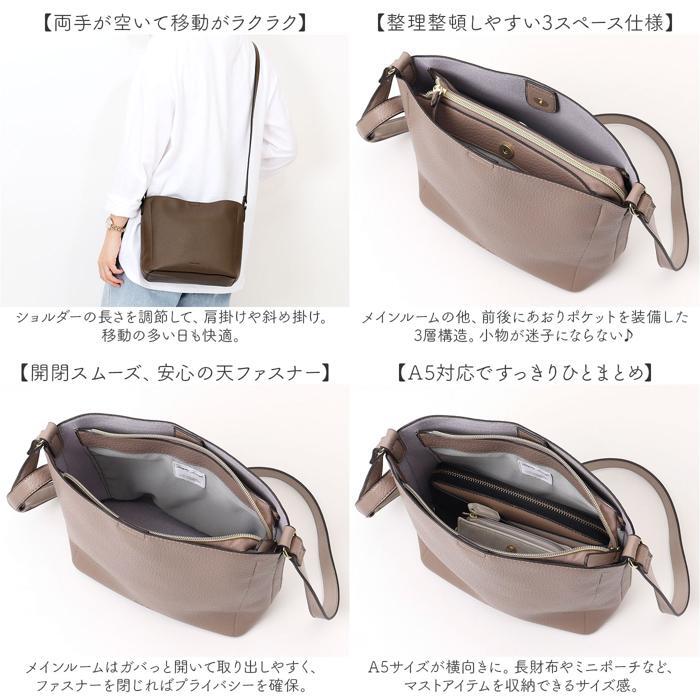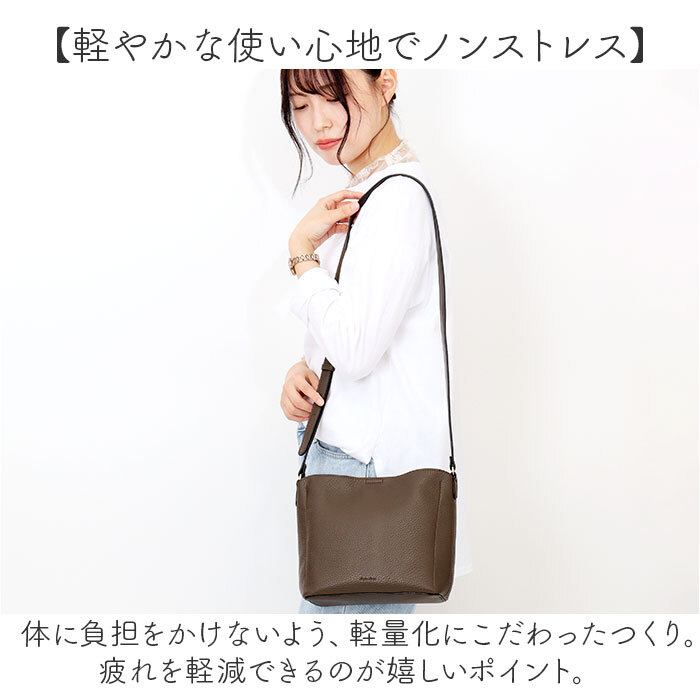 | 商品説明 | ・・【おしゃれに持てる万能アイテム】 ・触れたくなる生地感&コンパクト設計。「Legato Largo レトロシボ ショルダー」 ・【カジュアルときちんとを両立】 ・本革のように柔らかな質感で、奥深いシボ合皮を使用。上品な印象ながら、気軽に持ち出せる♪ ・【軽やかな使い心地でノンストレス】 ・体に負担をかけないよう、軽量化にこだわったつくり。疲れを軽減できるのが嬉しいポイント。 ・【両手が空いて移動がラクラク】 ・ショルダーの長さを調節して、肩掛けや斜め掛け。移動の多い日も快適。 ・【整理整頓しやすい3スペース仕様】 ・メインルームの他、前後にあおりポケットを装備した3層構造。小物が迷子にならない♪ ・【開閉スムーズ、安心の天ファスナー】 ・メインルームはガバっと開いて取り出しやすく、ファスナーを閉じればプライバシーを確保。 ・【A5対応ですっきりひとまとめ】 ・A5サイズが横向きに。長財布やミニポーチなど、マストアイテムを収納できるサイズ感。 ・【形崩れしにくく安定感をプラス】 ・ソフトな底板を内蔵しており、荷物を入れていない状態でも自立。キレイなフォルムもキープ。 ・【マグネットボタンでワンタッチ開閉】 ・力いらずで開閉できるあおりポケット。スリムな小物を収納できて便利。 ・【落ち着きのある風合いが魅力】 ・シンプルな仕上がりで、どんなコーデにも素敵にマッチ。飽きが来ず、長く愛用◎ ・【ポケット仕様】 ・メインルーム前後:マグネット式あおりポケット×2 |