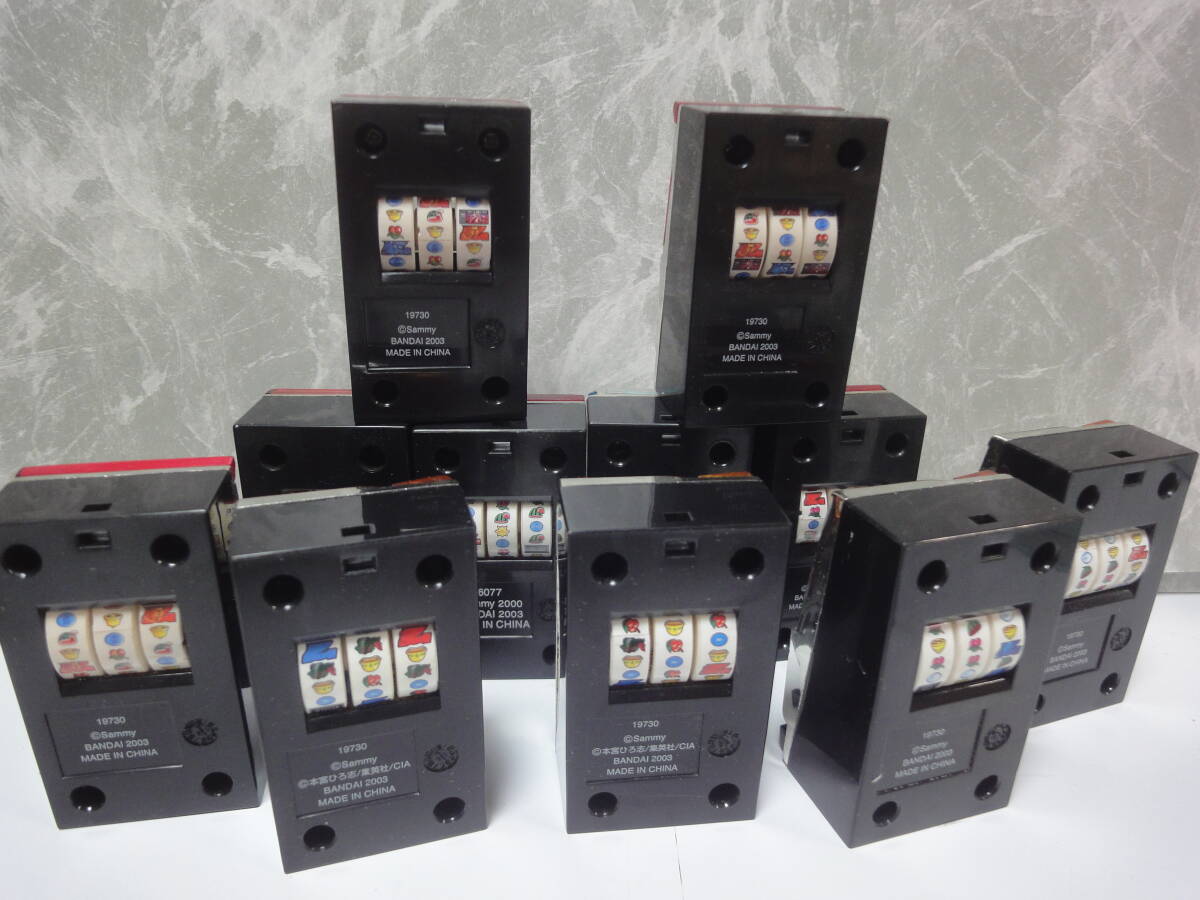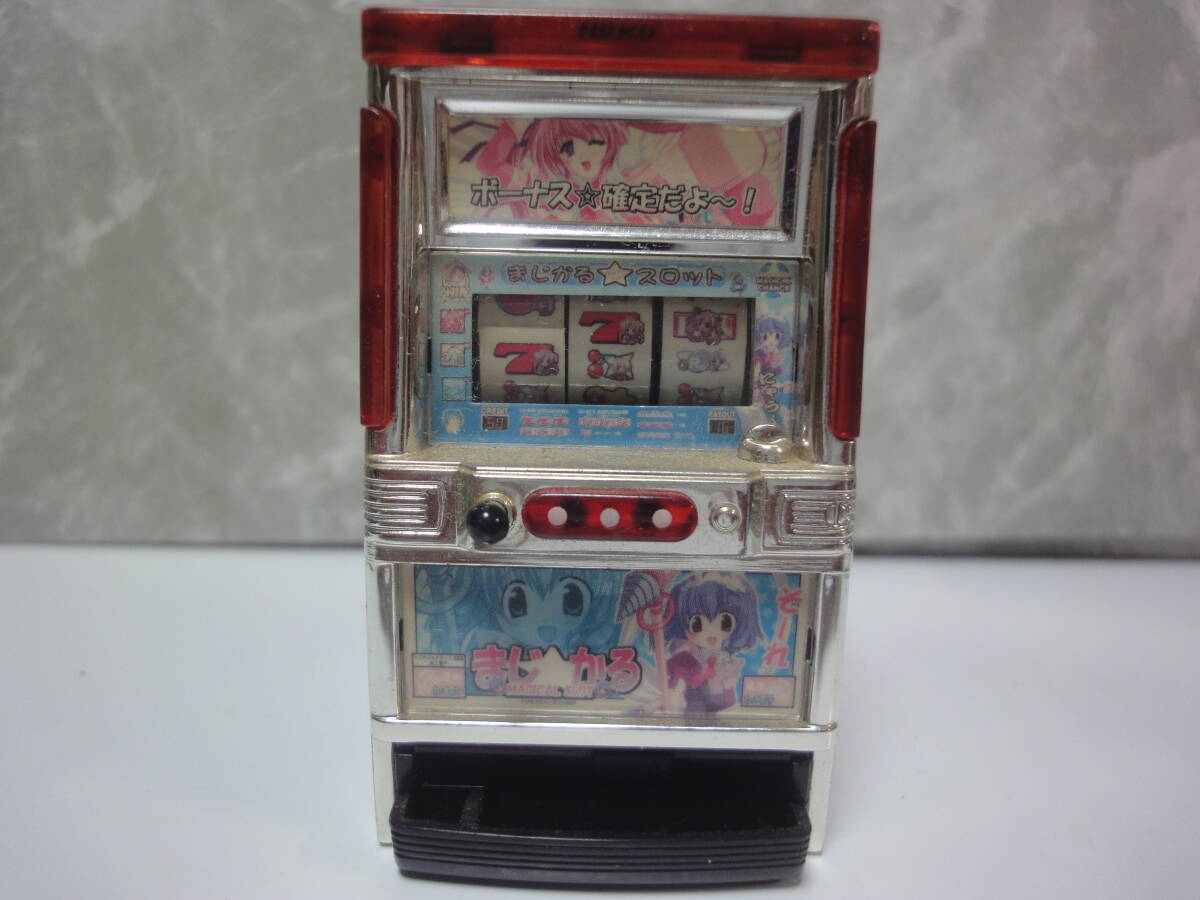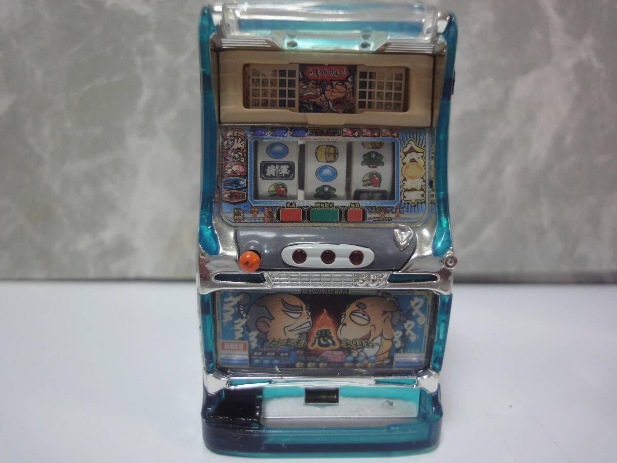 写真はだいぶ前に発売されていたパチスロ台 ミニチュアフィギュアです。※箱はありません。状態はプラケースに飾っていた物ですので大きな傷などなくきれいです。タイトルは写真で確認をお願いします、大きさは約6㎝程度。後ろでリールが回せて好きな絵柄で揃えます。発送はゆうパックの着払いの60サイズでお願いします。ばら売り/即決はしていません。