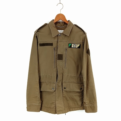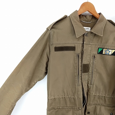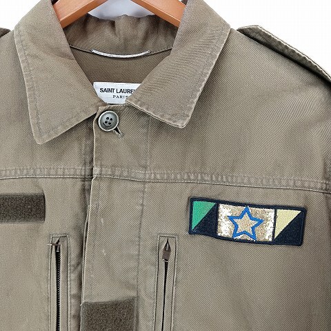 サンローラン パリ SAINT LAURENT PARIS エディ期 SHARK MILITARY SHORT COAT シャーク ミリタリー ジャケット 44 緑 カーキ系 ☆AA★ メンズ