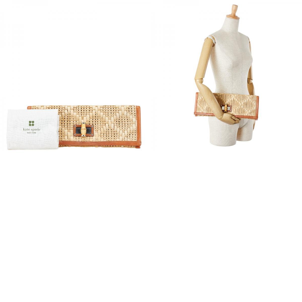 ケイトスペード クラッチバッグ セカンドバッグ ベージュ ブラウン ラフィア レザー レディース Kate Spade 【中古】