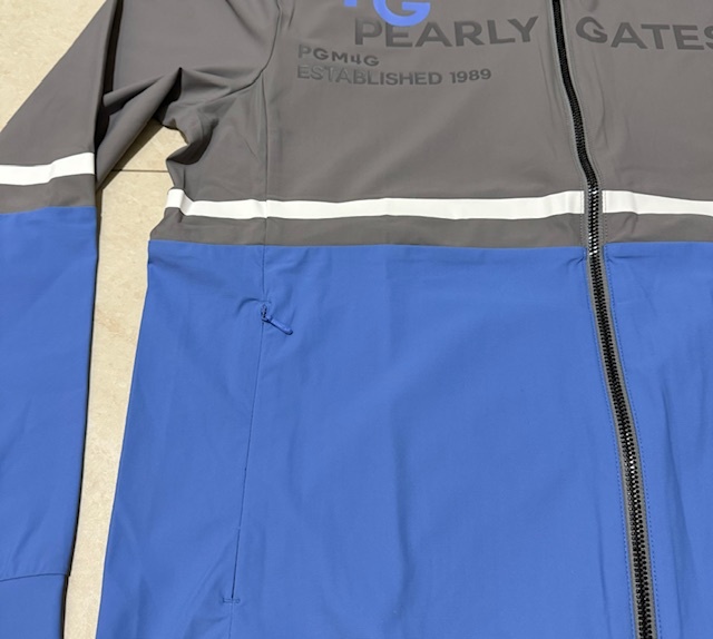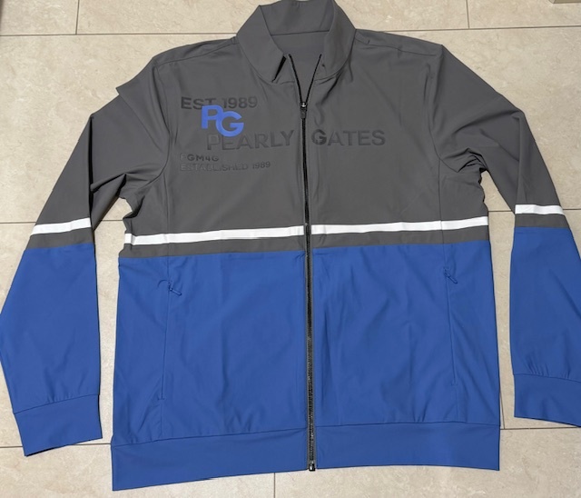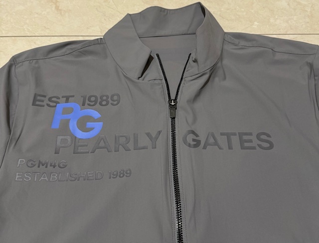 ・未使用 正規品・PEARLY GATES パーリーゲイツ 春夏秋 PGプリント ナイロン フルジップストレッチジャケット 6号 XLサイズ トライカラー