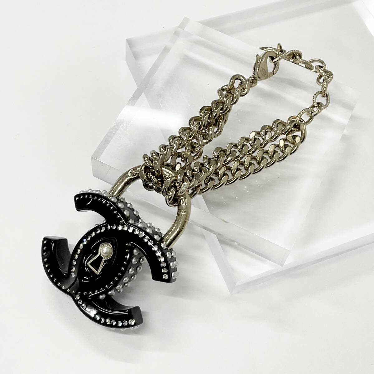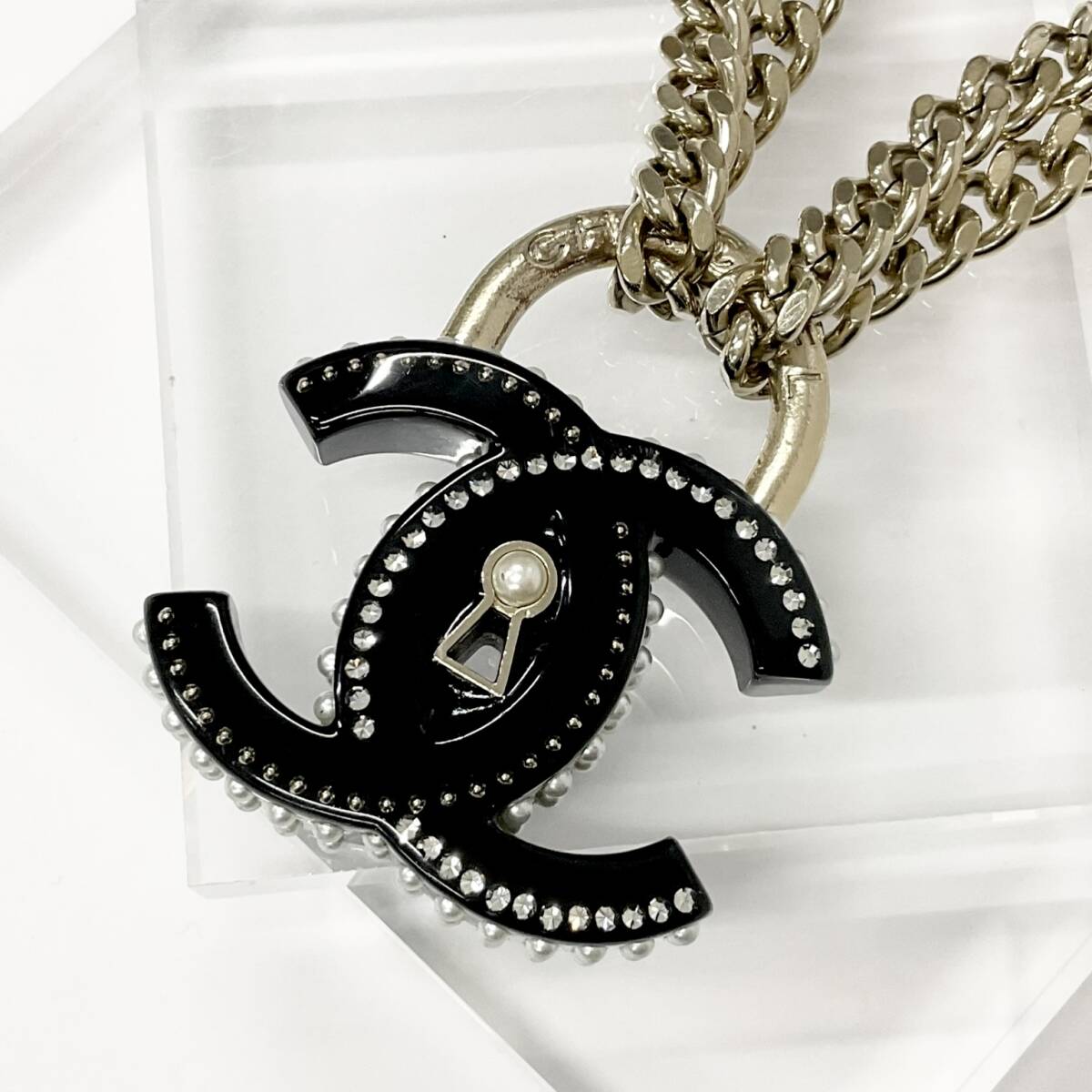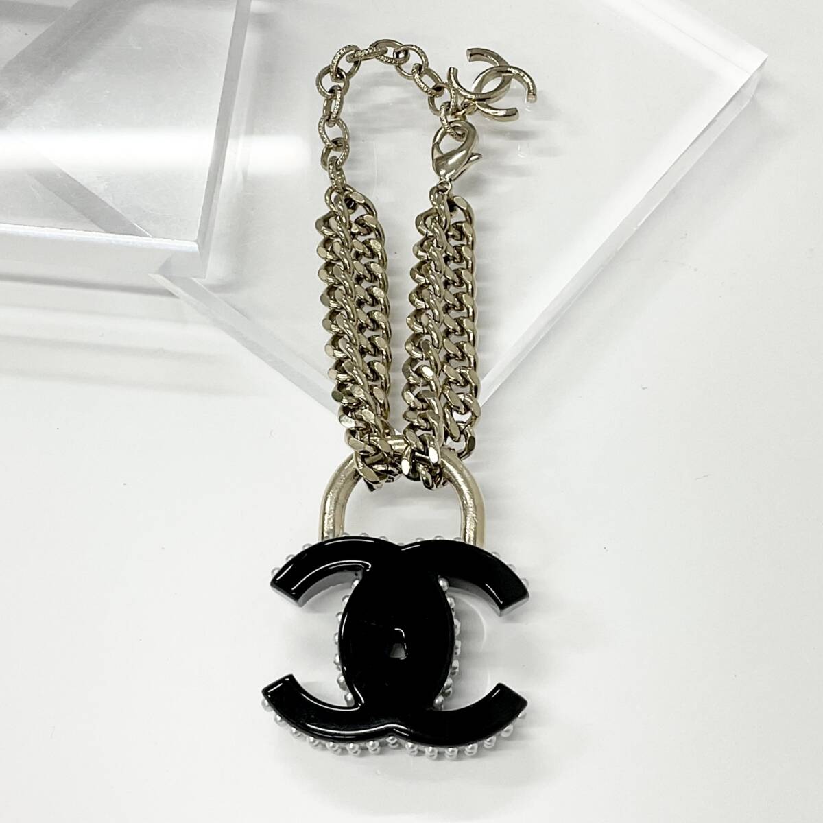 シャネル ココマーク チャーム パール ラインストーン ゴールド ブラック