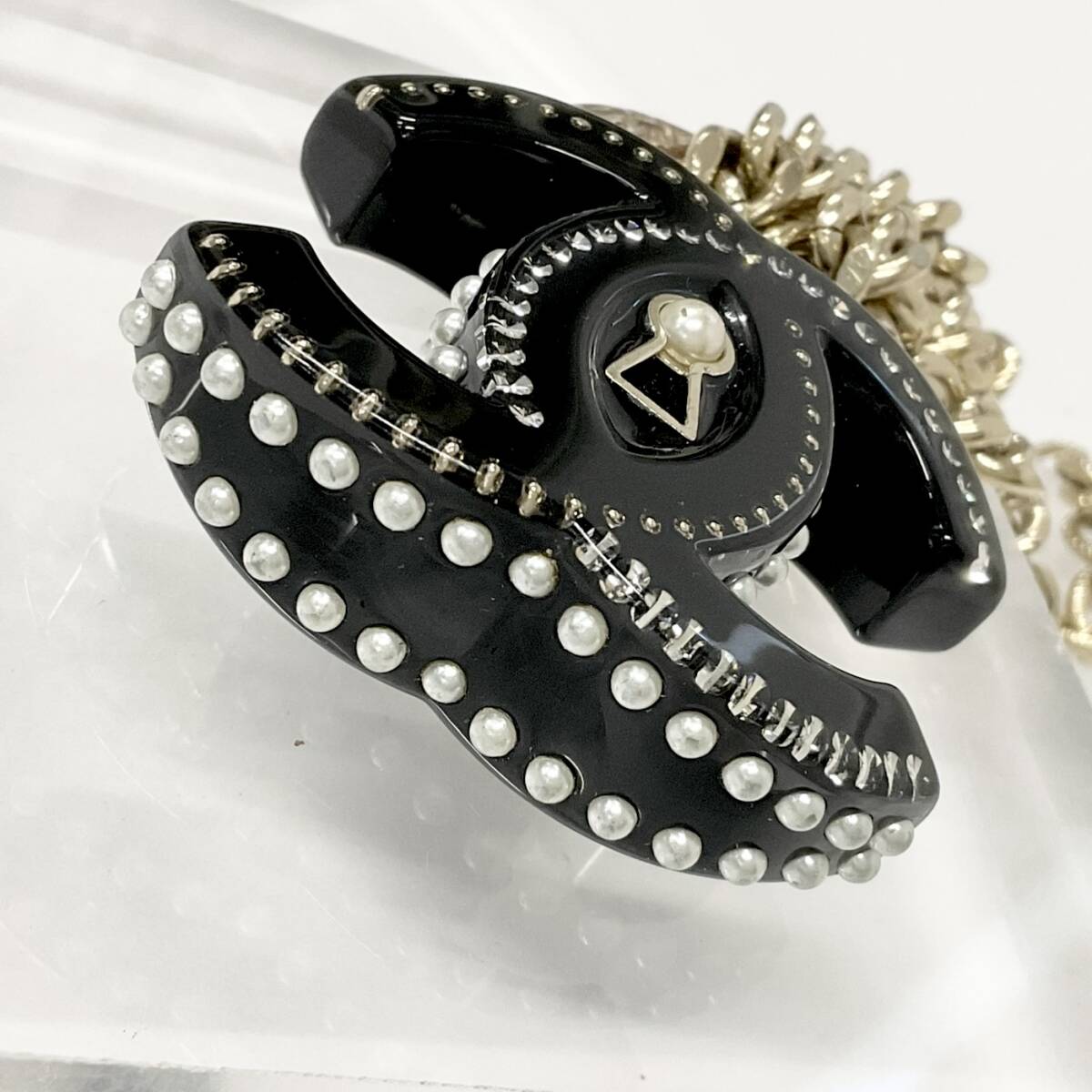 M11355 シャネル ココマーク チャーム パール ラインストーン ゴールド ブラック