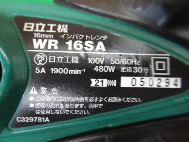 16mmインパクトレンチ 【メーカー】 日立工機 HITACHI 【型式】 WR16SA 【仕様】 ・電源:100V 50/60Hz ・消費電力:480W ・電流:5A ・回転数:1900min-1[回転/分] ※上記情報のみになります。 中古品です。 ※初期不良の場合商品到着後7日間は返品対応致します。 ※実作業による長時間の確認は行っておりません。 ※中古品の為 100%の性能の保証はできかねます。 中古品になりますので傷や汚れ等がございます。 画像の物が全てになります。 他に付属品等はございません。 上記の事をご理解・ご了承の上で ご入札をお願い致します。 その他ご不明な点等ございましたら、ご入札前にお気軽にご質問下さい。 ※17時以降にお問い合わせ頂いたご質問等につきましては、お応えするのが翌営業時間中になりますのでご了承ください。 ※オークション終了日当日のご質問は、17時迄にお願い致します。 *詳細につきまして ご質問されましても お答えできない場合もございます。 | ||||
