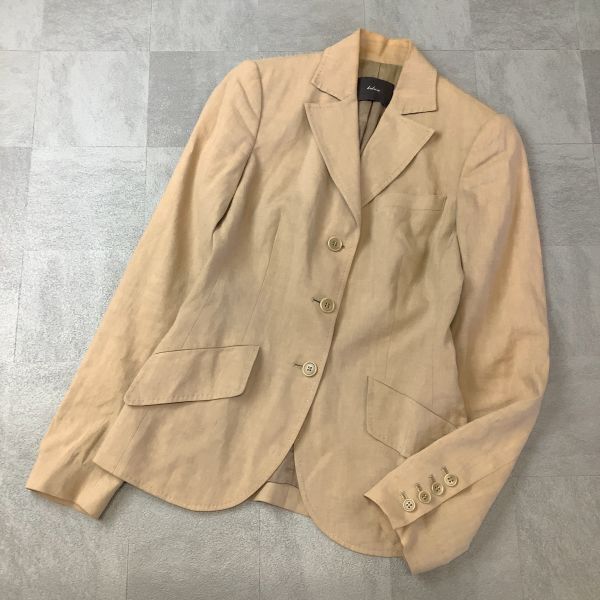 【爽やかなリネンブレンド】kulson カルソン リネン混 テーラードジャケット レディース 38 Mサイズ ブラウンベージュ