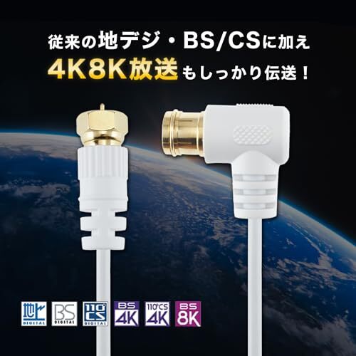 「ホリック 極細アンテナケブル S-2.5C-FB同軸 3m 4K8K放送(3224MHz)/BS/CS/地デジ/CATV 対応 ホワイト L」▼4533115042451▼(商品説明)差込式L字-ネジ式ストレトホワイト(L字差込式/ネジ式)/3m/HAT30-245LSWH・Color:ホワイト(L字差込式/ネジ式)Size:3m・パッケジ個数:1・●ケブル規格:S-2.5C-FB ●コネクタ規格:F型・●コネクタ形状:L字差込式-ネジ式(金メッキ仕様) ●コネクタサイズ ・L字差込式:W約14.8 x H約14.4 x D約30.2 mm ・ネジ式:W約12.5 x H約12.5 x D約32.8 mm・●インピダンス:75Ω ●ケブル直径:約3.5mm・ケブル長:3m・●袋パッケジ ●期間:1年間新4K8K衛星放送対応 従来の地デジ、BS、CS放送に加えて、最新の4K/8K放送にも対応しています。 しなやかな2.5Cケブル採用 2.5Cケブルは、4Cケブルに比べ細く、取り回し易いので配線が簡単に行えます。 配線しやすいL字差込式/し