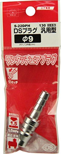 「SK11(エスケ11) ワンタッチエアプラグ DSプラグ たけのこ外径 9mm H9 S-22DPH 130」▼4977292437059▼(商品説明)50×15-/50x15/S-22DPH 130・Style:50×15・パッケジ個数:1・用途:汎用エアプラグ・たけのこ外径:9mm、サイズ:50x15、重量:23g・適用流体:空気、最高使用圧力:1.5mpa・同一商品:4977292436830(sk11・dslプラグlh9・s-22dphl180)・本体:鋼鉄・他エア配管をワンタッチで接続でき、従来品より大幅に小型軽量化、手元や接続部の負担が大幅に軽減できる 用途 汎用型プラグ 特徴 ・エア配管を簡単にワンタッチで脱着出来る ・従来品と同形状の差し込み形状で、本体を大幅に小型軽量化 ・純日本製