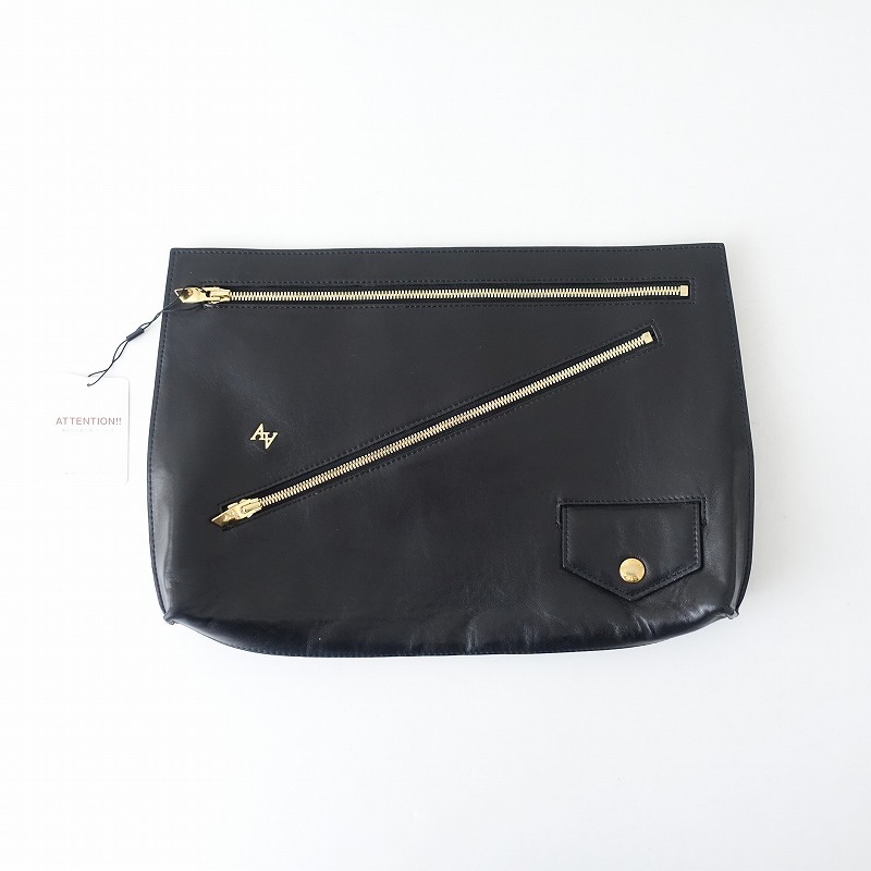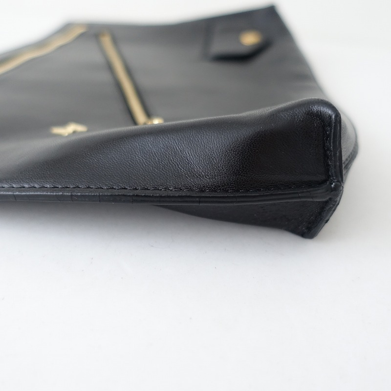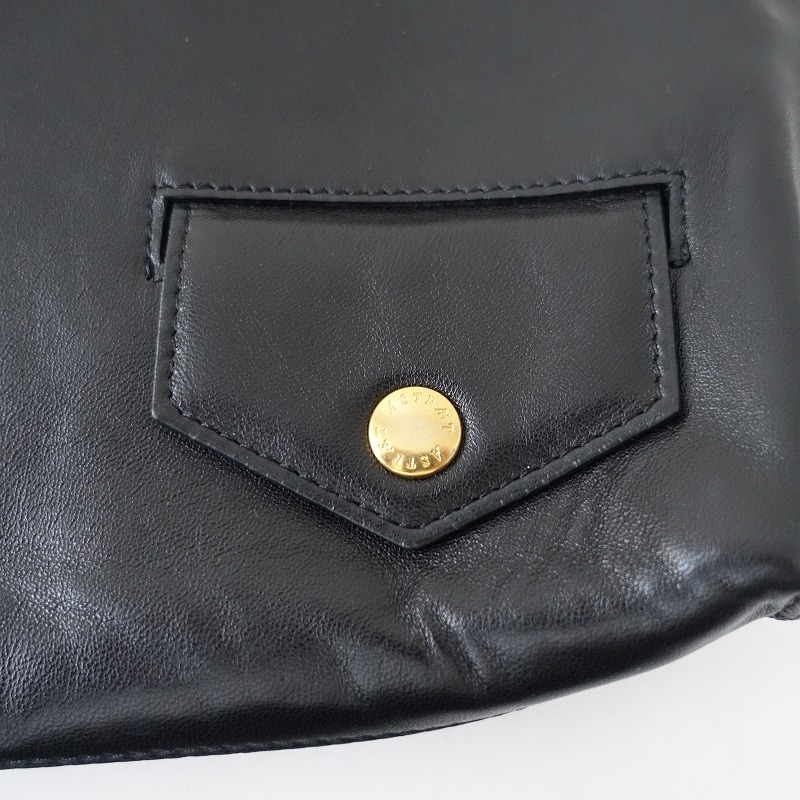ASTRAETのクラッチバッグです。カラーはブラックで、開口はファスナーです。表面にファスナーポケットが2個、小さくスナップボタン留めのフラップポケット付きです。素材はレザー(羊皮)です。定価(メーカー希望小売価格)70,400円のお品物です。 |