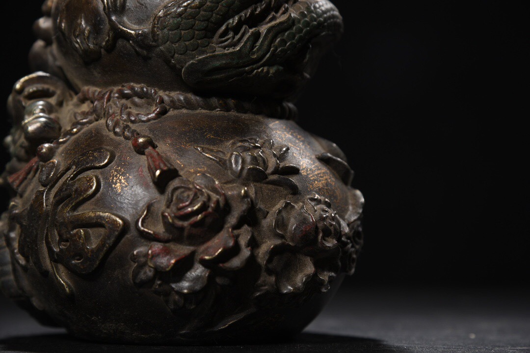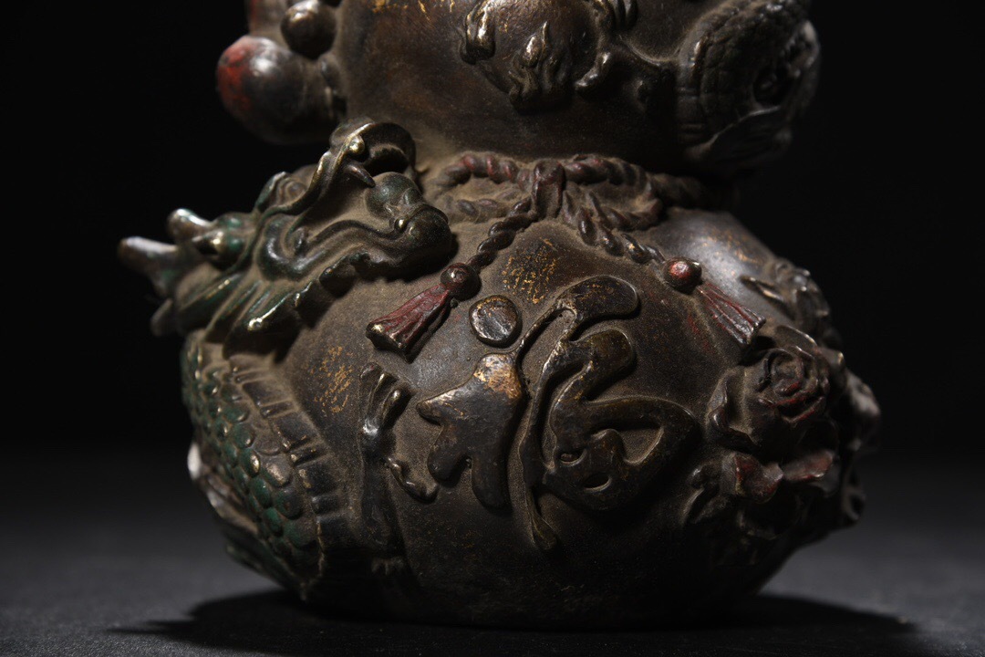 | 【蔵友館蔵品・銅製・泥金・龍紋福祿】・希少珍品・置物・賞物・中国時代美術 |