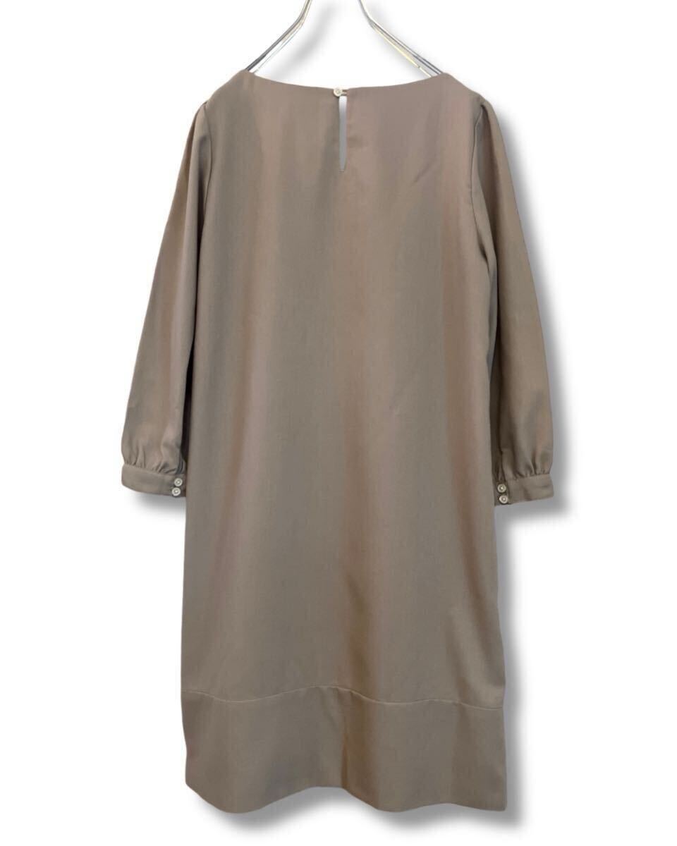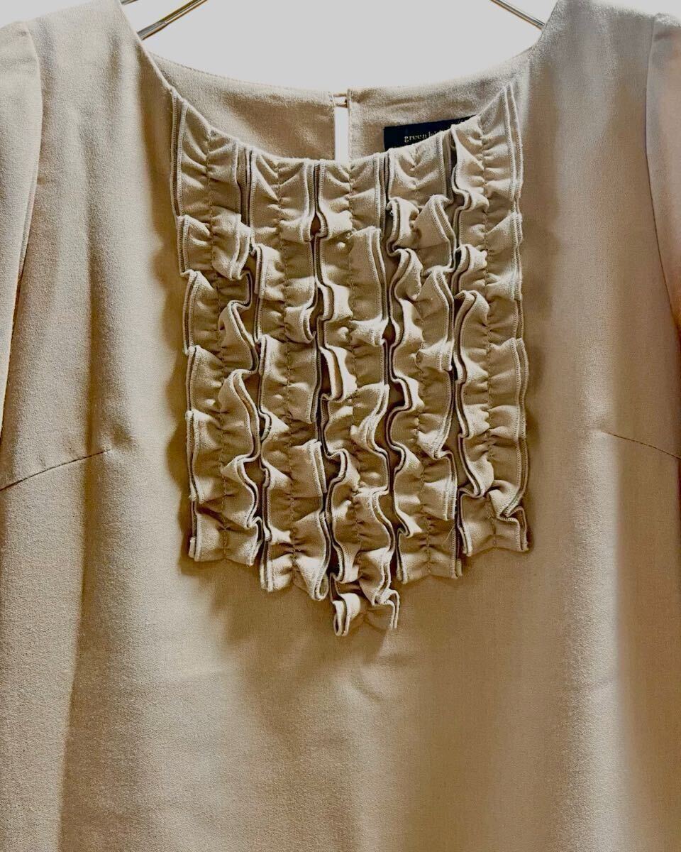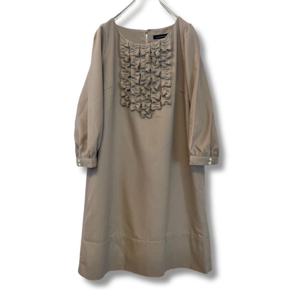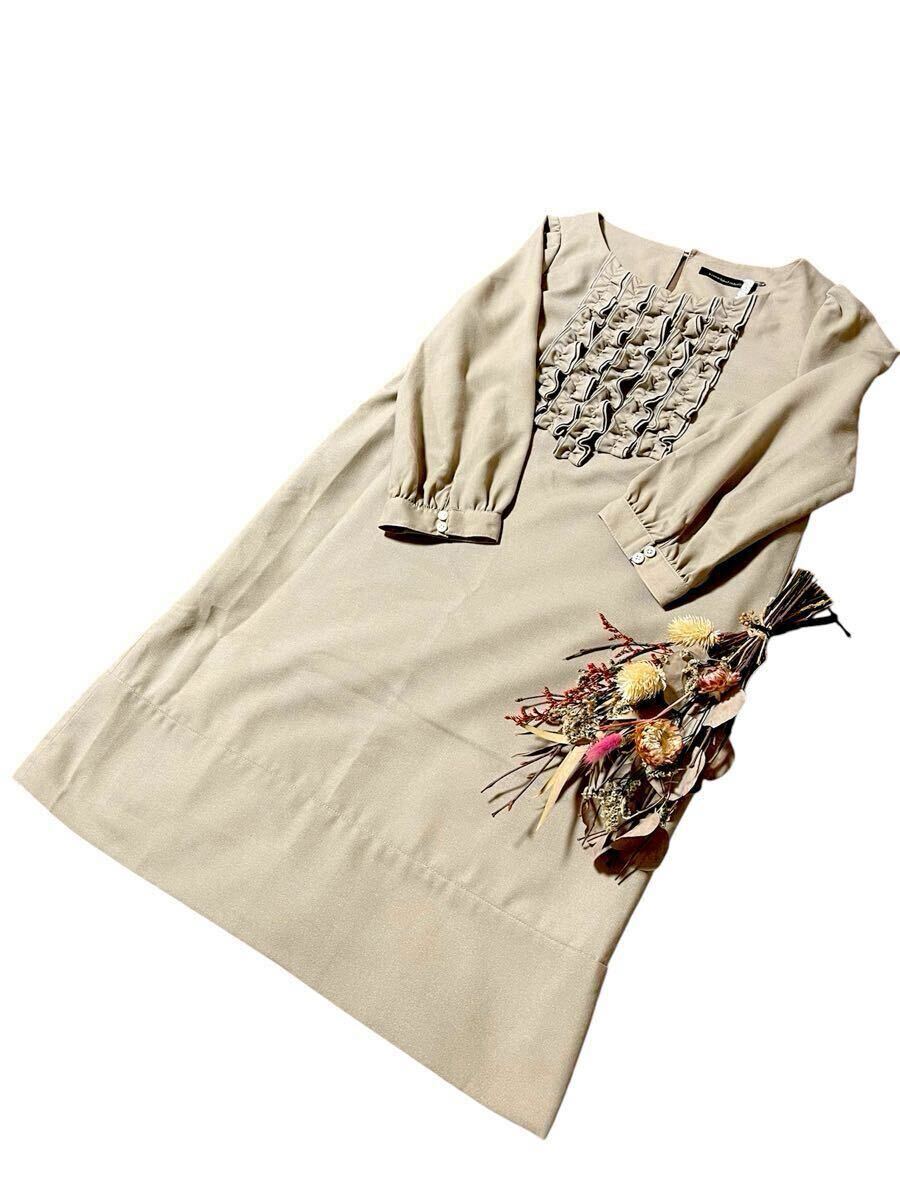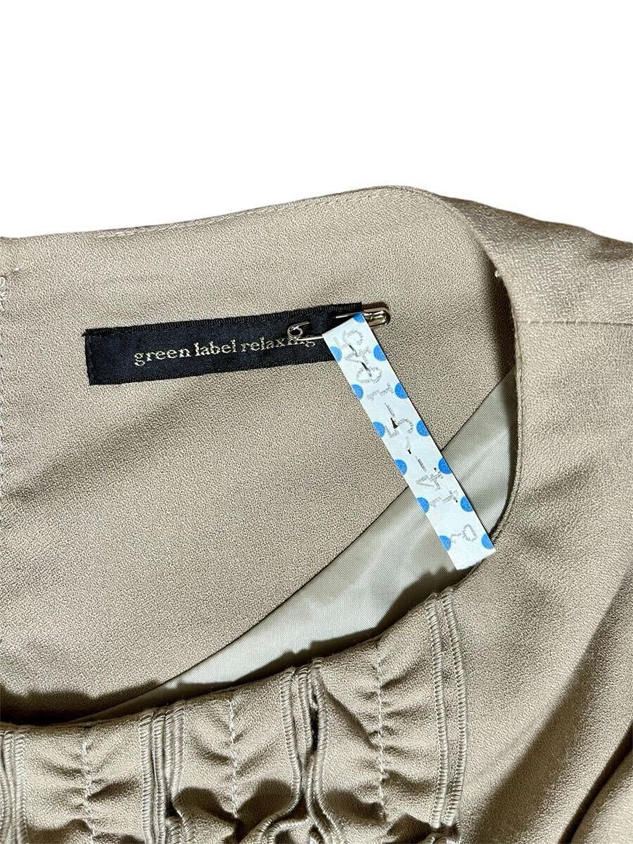 グリーンレーベルリラクシング 7分袖袖 フリルチュニックワンピース●フリーサイズ●レディース ベージュ系 洗濯プレス済み 古着/10