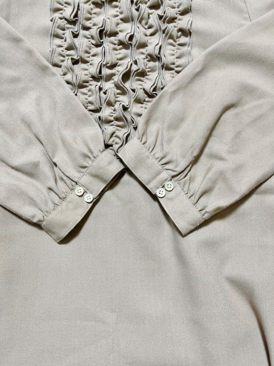 落ち着いた色味のベージュなのでフリルでも甘すぎず、上品に着こなせます