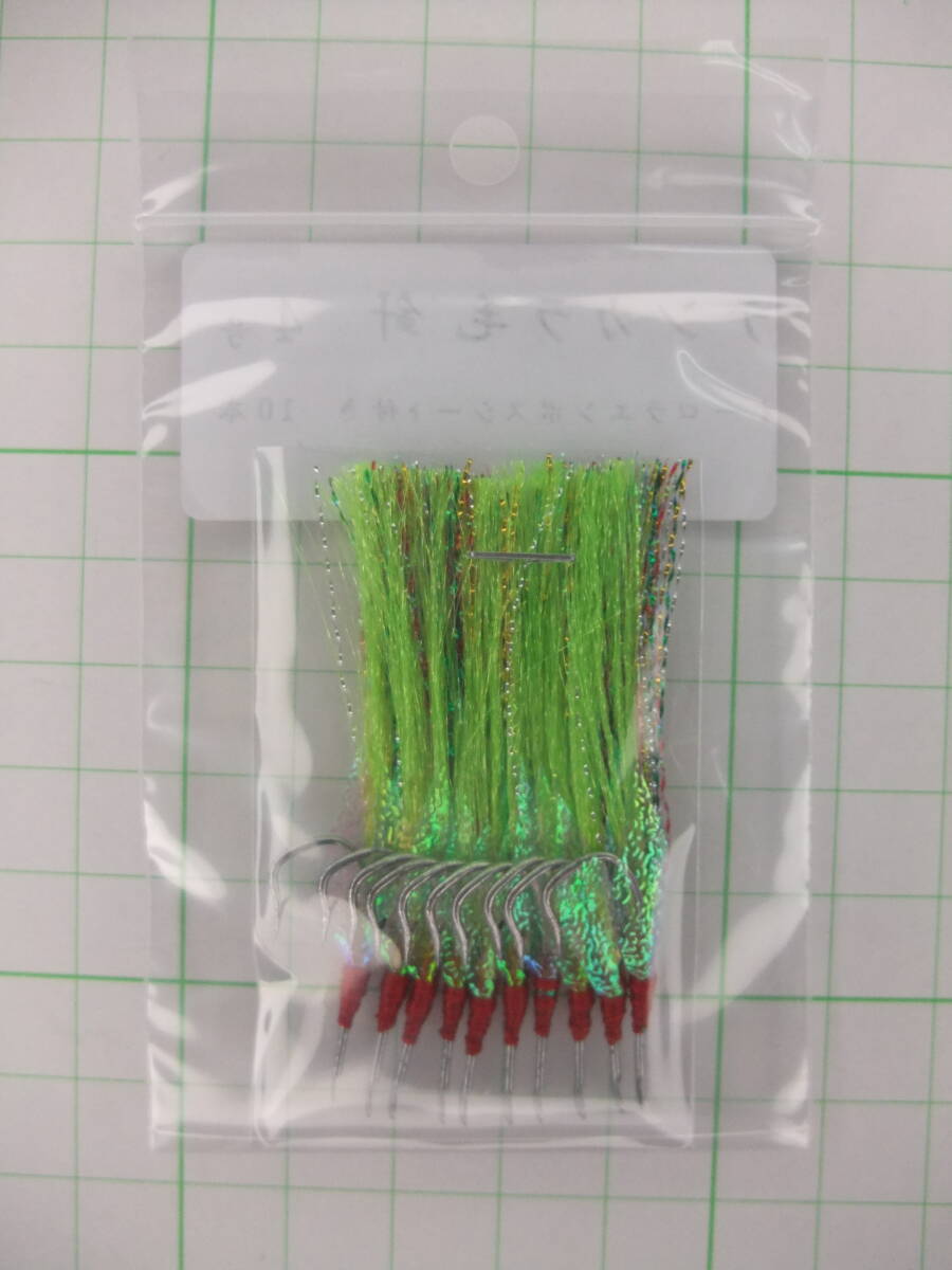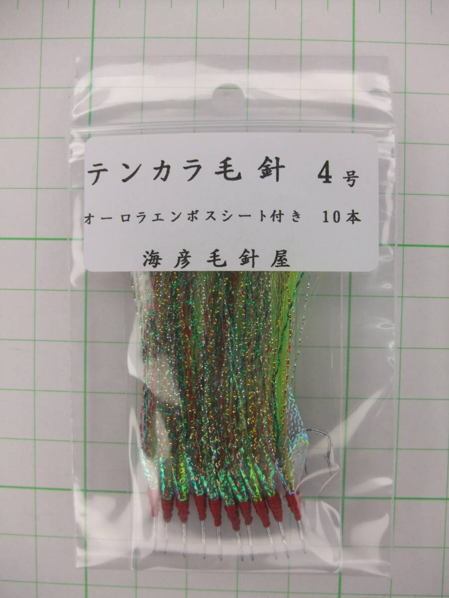 4WOE テンカラ毛針4号 イソ縄毛針 若草フラッシャー オーロラエンボスシート付き 10本セット