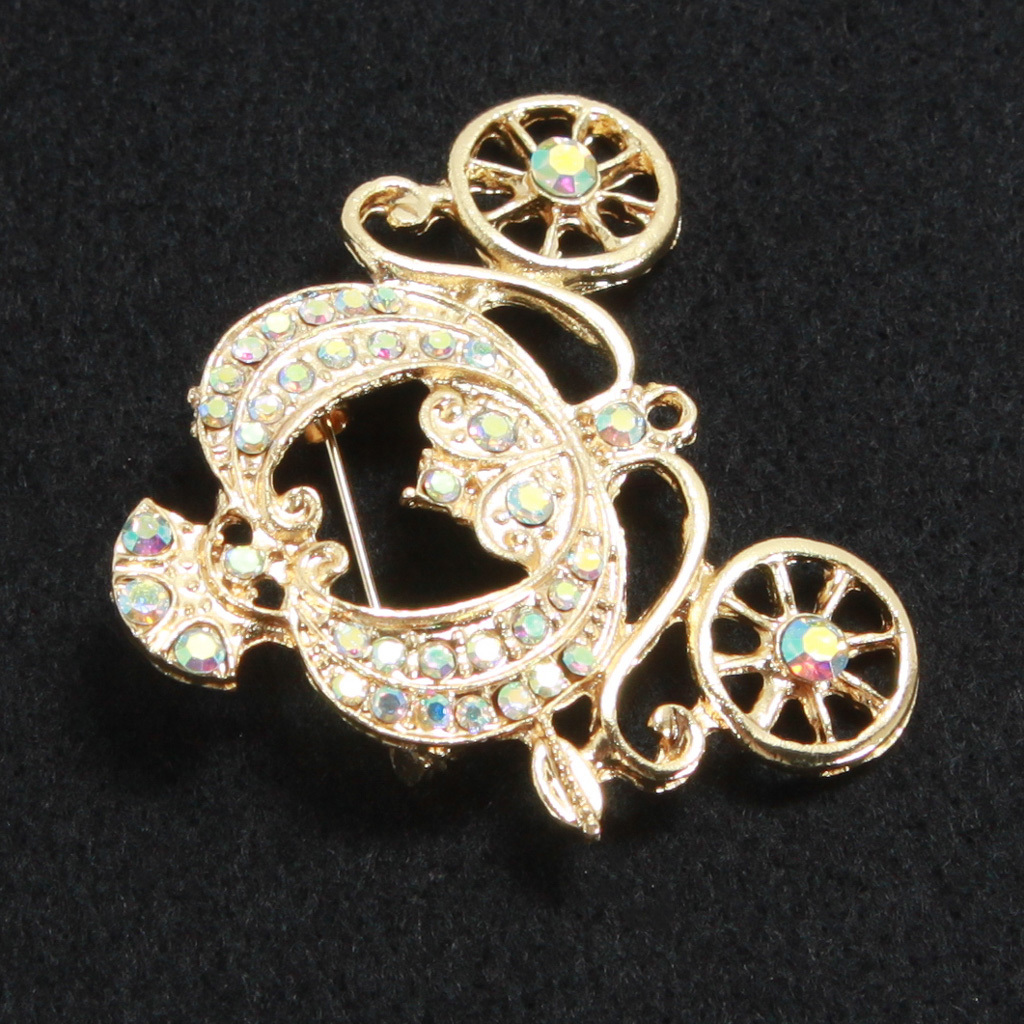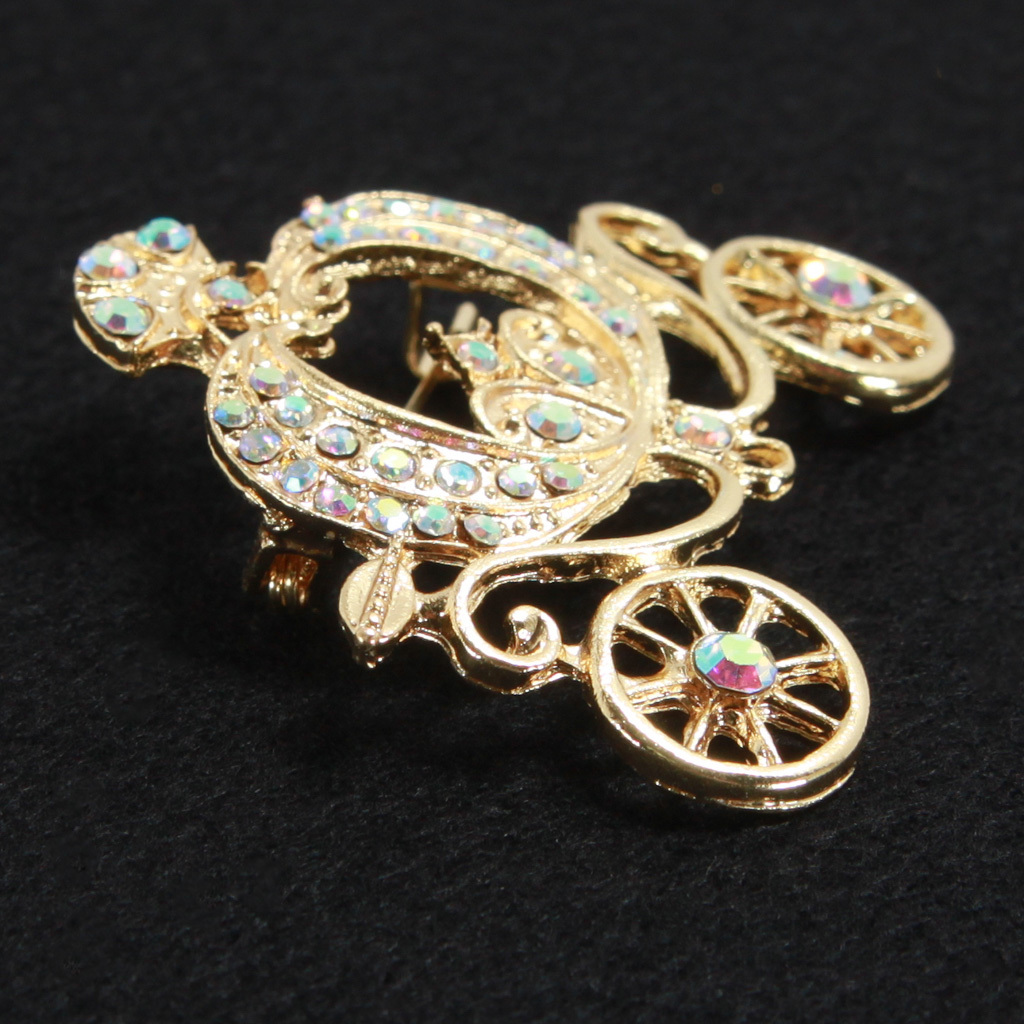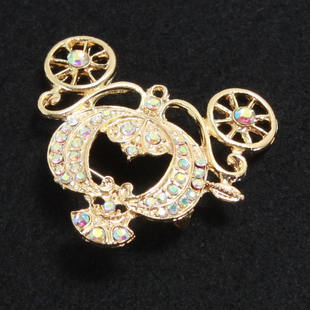 金色のカボチャのブローチ ファンタジック ゴールドカラー ラインストーン 馬車 襟元等 新品