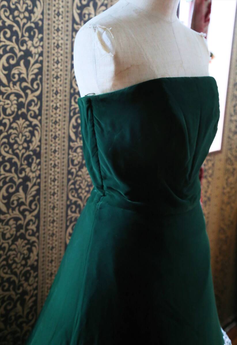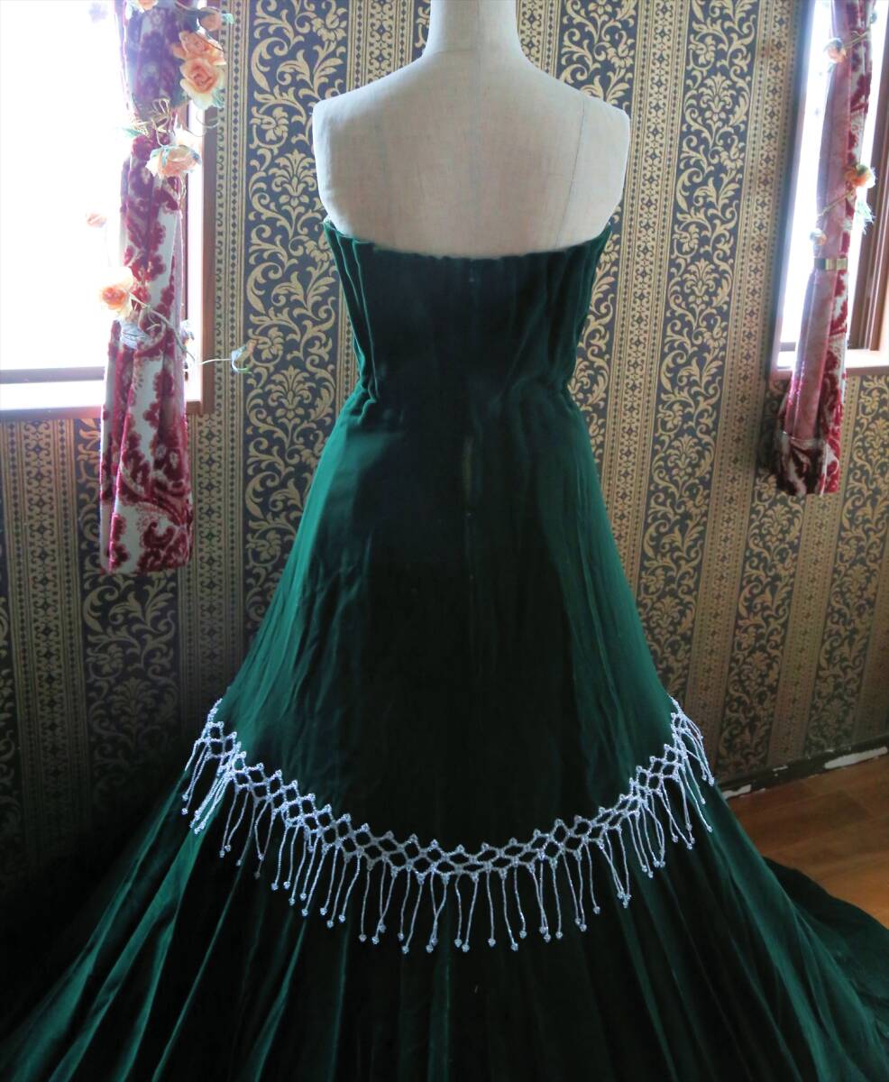 実寸はバスト8288cm、ウエスト5764cm、前中心から裾までの丈約134cm、脇下から裾までの丈155cm、後ろ丈約200cm、多少の誤差はご了承ください。