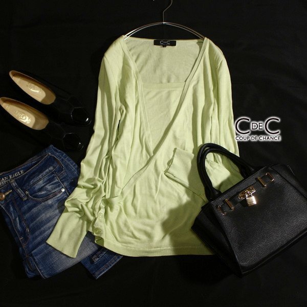 美品 COUP DE CHANCE クードシャンス 上品綺麗め カシュクール ニット 38号 M 春 夏 25B03