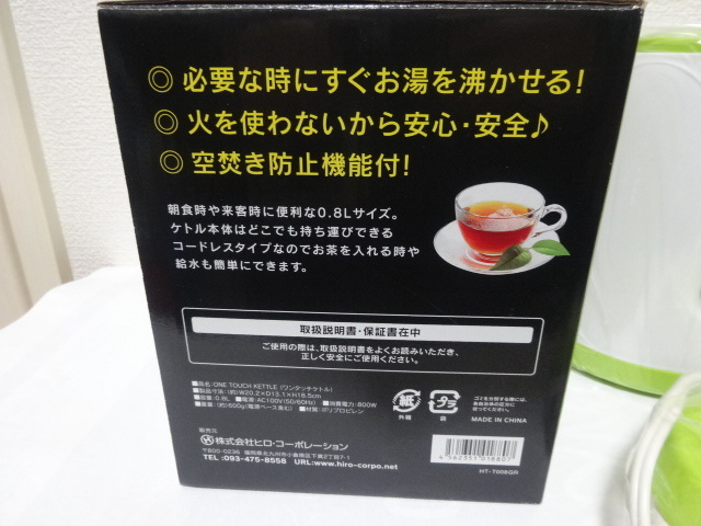 ワンタッチケトル 0.8L HT-T008GR コードレス電気ケトル ちょうどいい!!