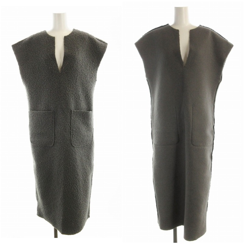 リエディ 2WAYリバーシブルフェイクウールorシープライクボアキーネックワンピース ジャンパースカート ロング S グレー /EE