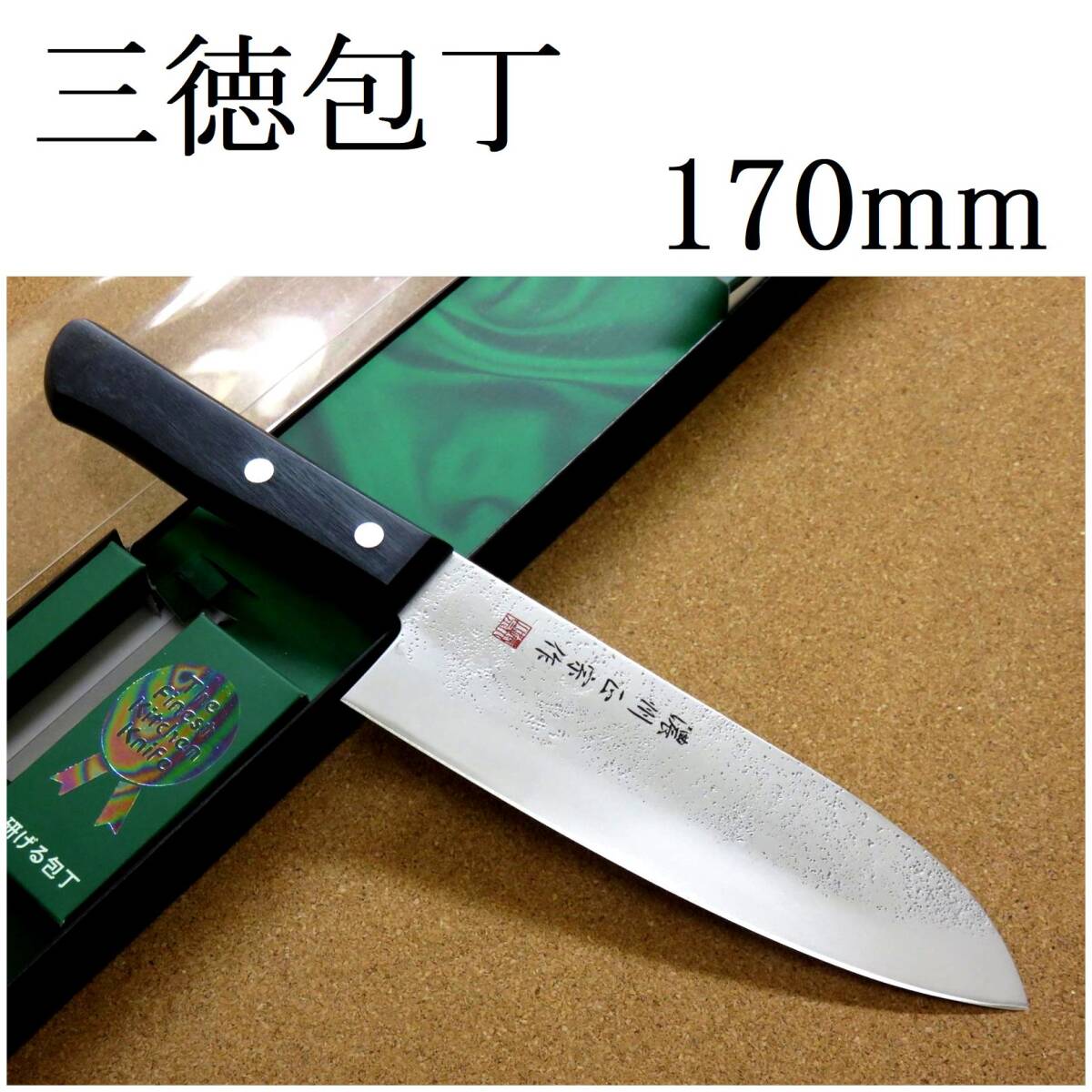 関の刃物 三徳包丁 17cm (170mm) 濃州正宗作 梨地 ステンレス刃物鋼 黒合板 両刃 万能包丁 文化包丁 肉切り 魚の処理 野菜切り 日本製