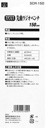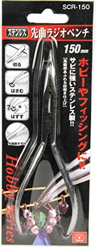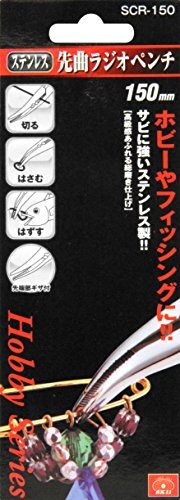 「SK11 ステンレス製 先曲ラジオペンチ 先端ギザ付 SCR-150」▼4977292273091▼(商品説明)先曲・Silver SCR-150・・Style:先曲・用途:ホビー、フィッシング等・特徴:先端はギザ付で部品をしっかりキャッチできる・切断能力:銅線0.9mm・刃部硬度:HRC45~48・材質:ステンレス鋼(SUS420)説明 高級感あふれる総磨き仕上げ 【用途】 ホビー、フィッシング等 【特徴】 ・サビに強いステンレス製 ・先端はギザ付で、部品をしっかりキャッチできる 【注意事項】 ※本品はホビーから軽作業用の商品ですので、能力以上には使用しないで下さい ※感電の恐れがありますので、電気の流れているものには使用しないで下さい ※用途以外には使用しないで下さい ※保護メガネ等を着用して作業をして下さい ※使用後の油拭き等、手入れをお願いします ※サビ等、発生の恐れがあります