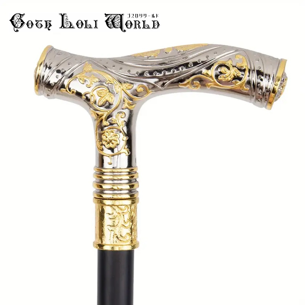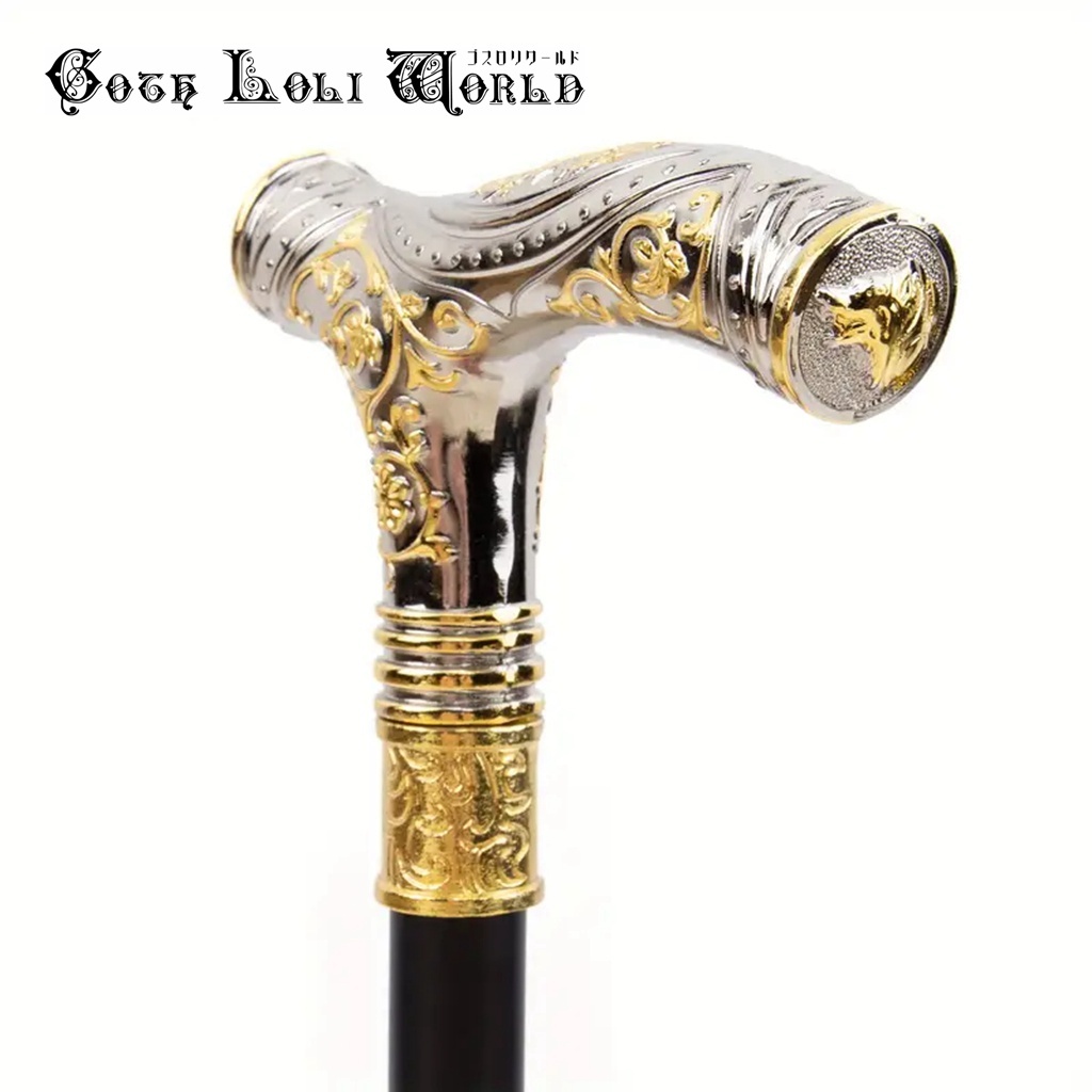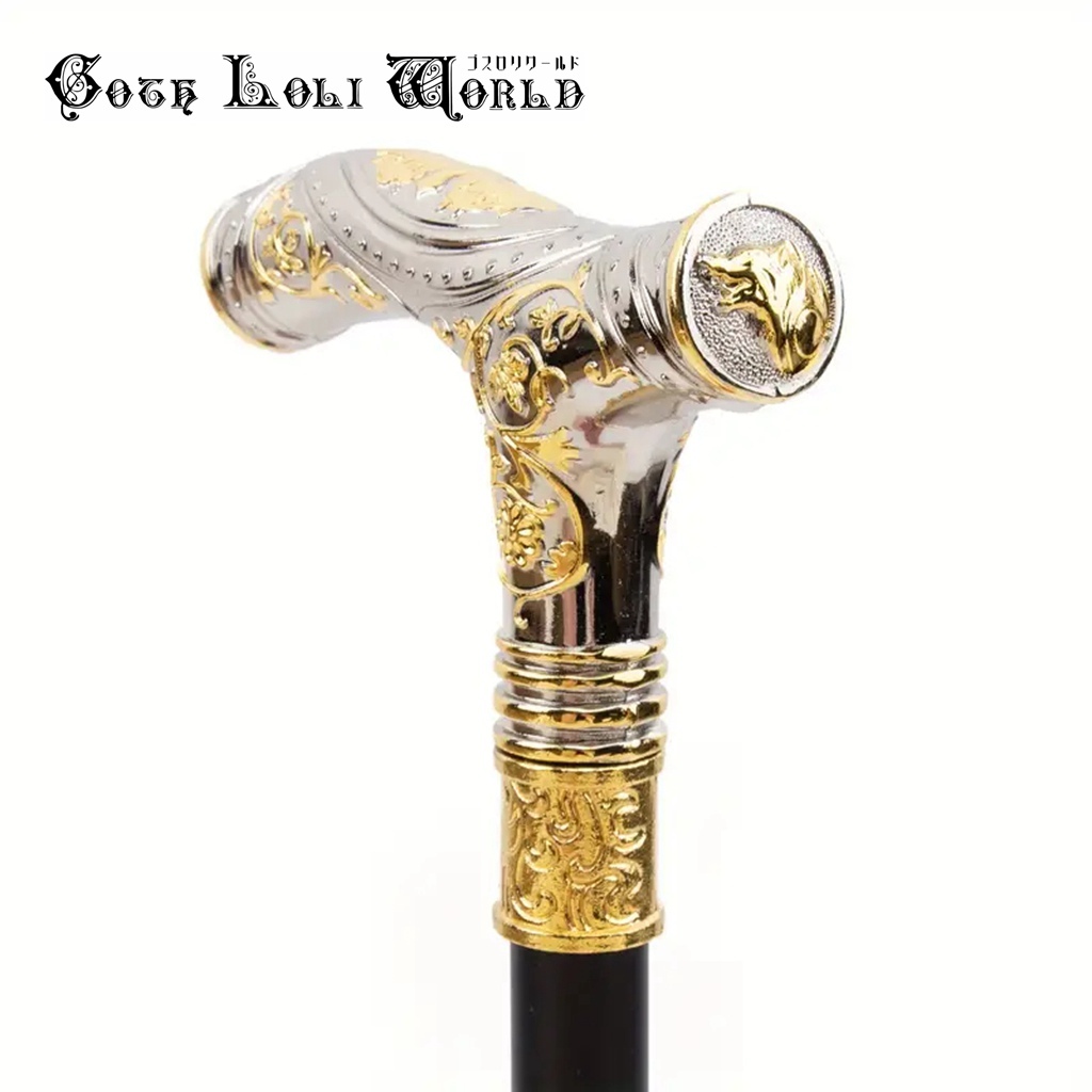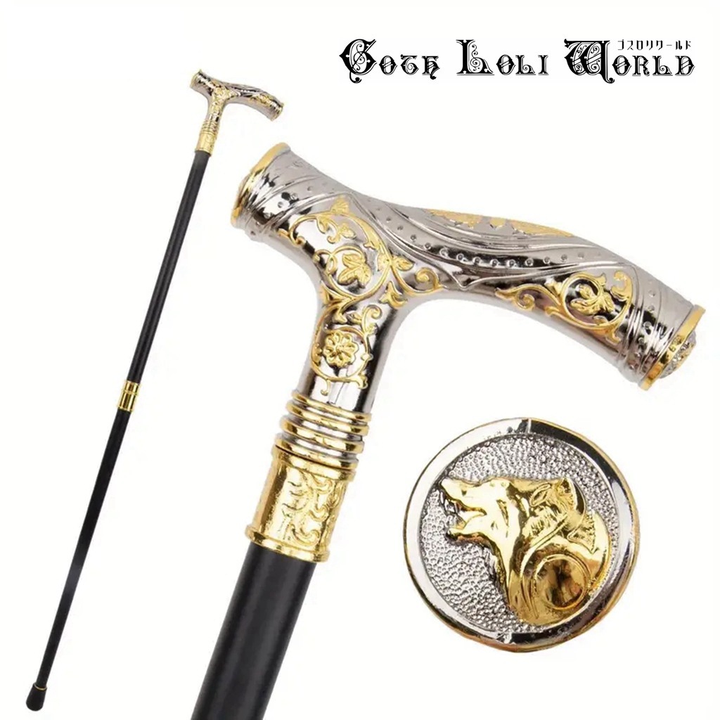 即納 AS020 狼 オオカミ ウォーキング ステッキ ゴールド 杖 高級 銀色 金属 ファッション ゴシック パンクロック ビジュアル系
