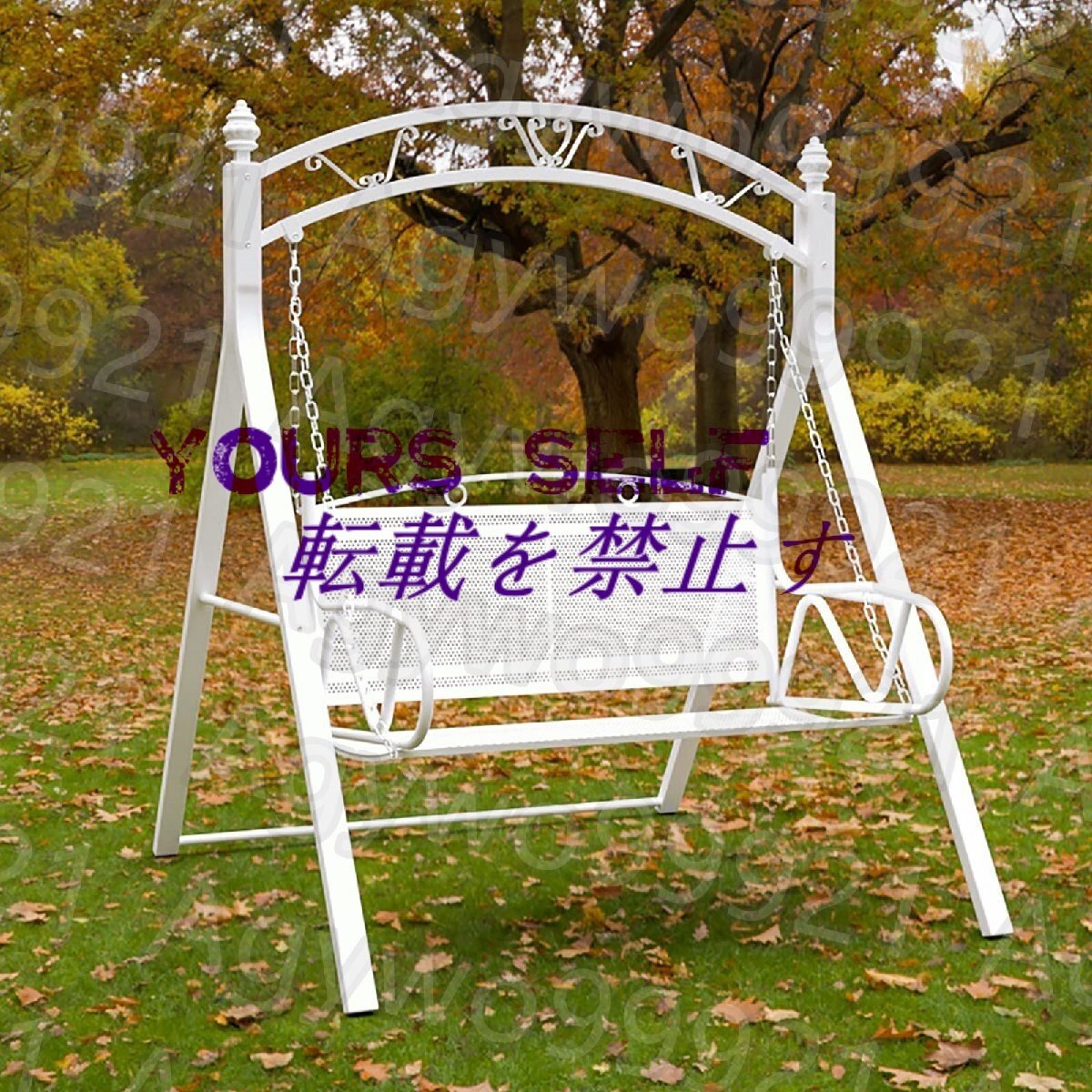 ブランコ 屋外 二人乗り 大人用 子供 フレーム 2人用パティオスイングチェア アイアンスイングロッキングチェア 130*110*160cm 白