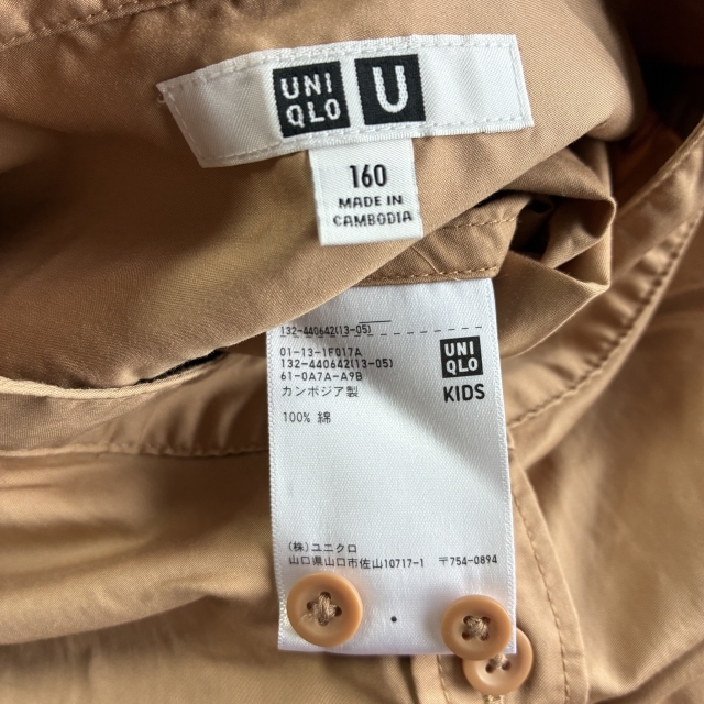 A622◇UNIQLO | ユニクロ U コットンシャツワンピース ベージュ 160サイズ 中古品