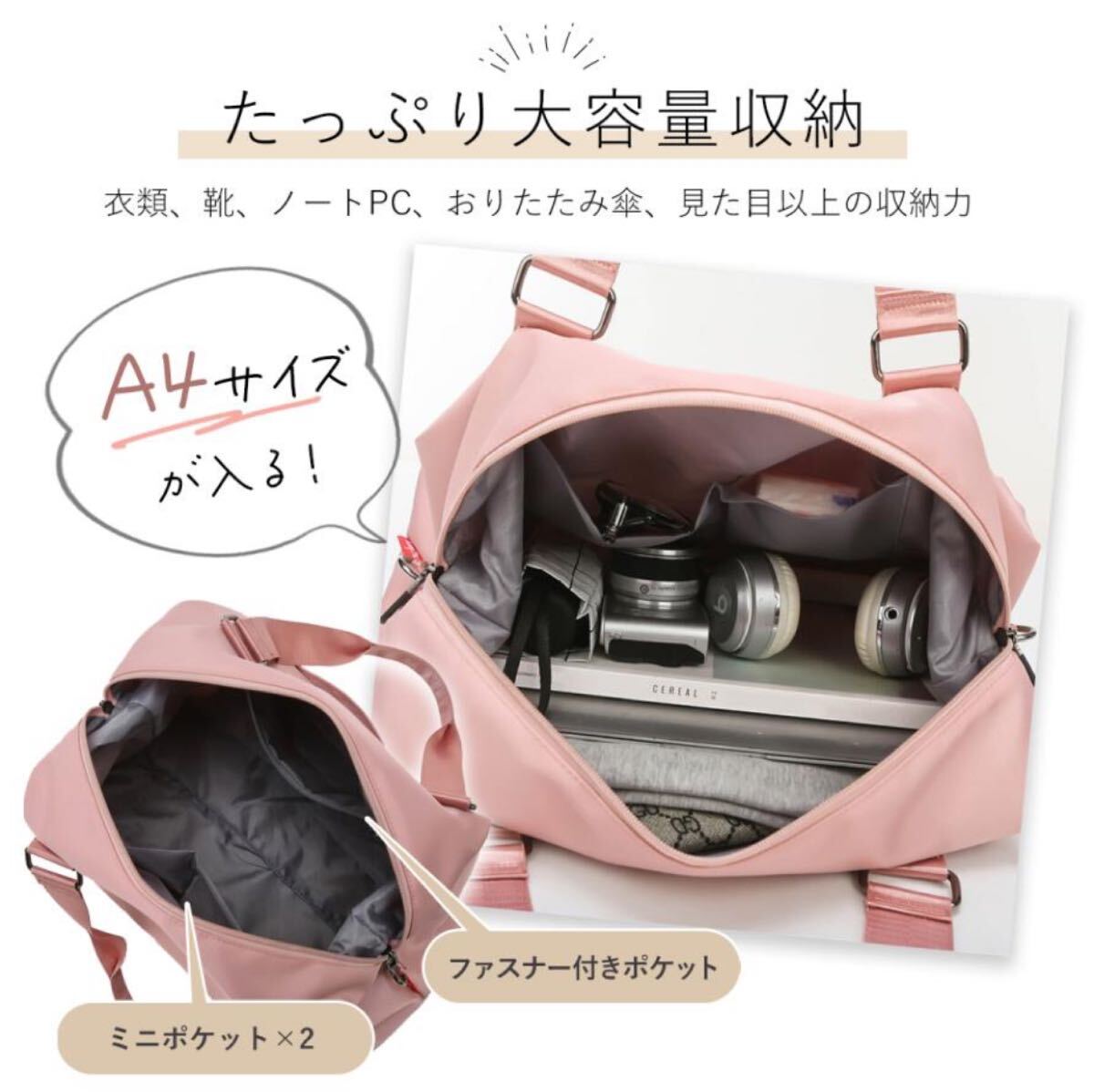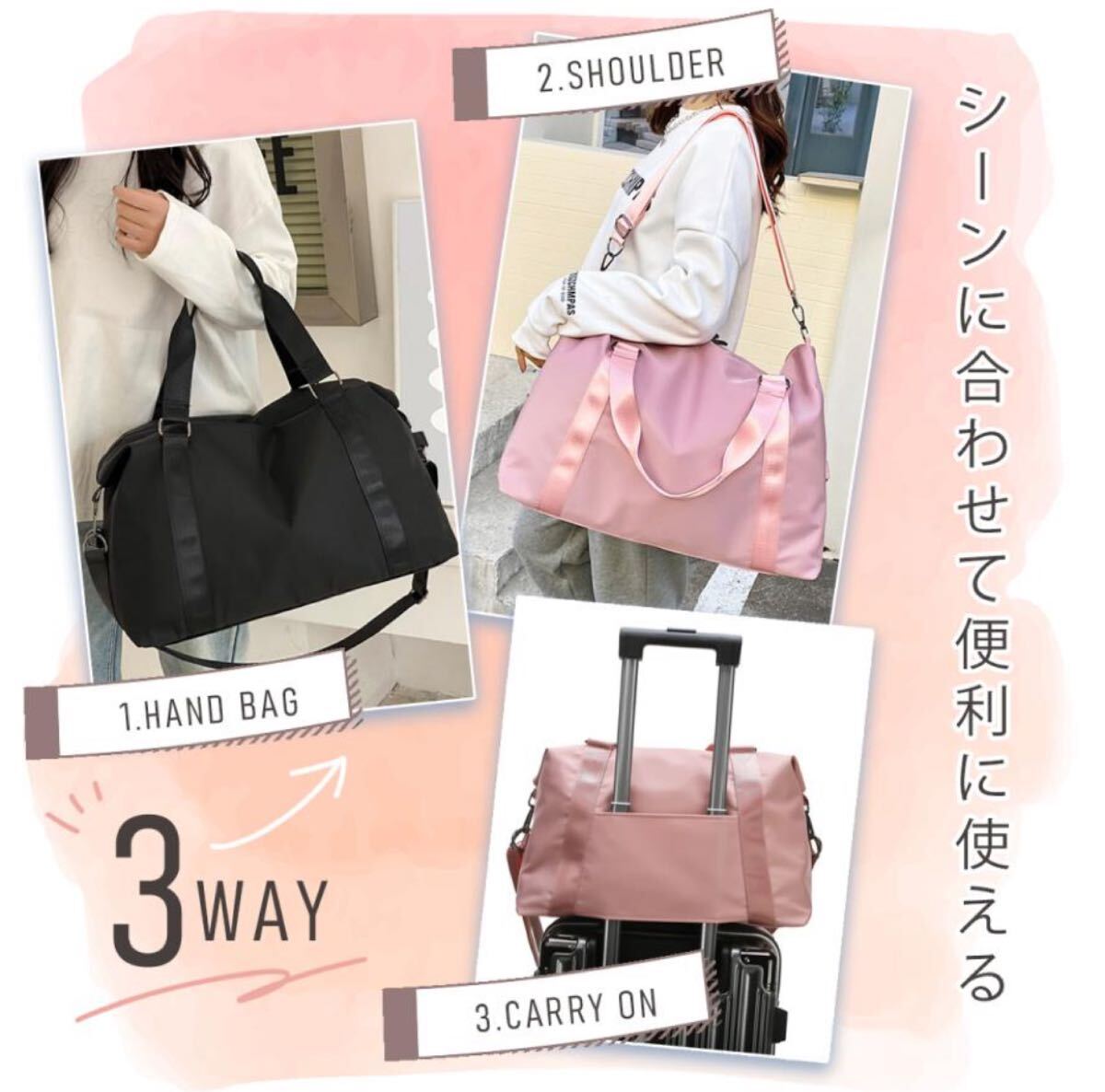 旅行、スポーツ、ビジネス、マザーズバッグとして幅広く使え、男女問わず様々なシーンで大活躍します。