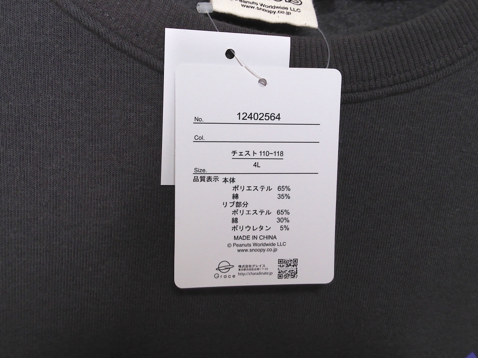 | 商品情報 | 未使用 素材 本体 ポリエステル65% 綿35% リブ部分 ポリエステル65% 綿30% ポリウレタン5% |