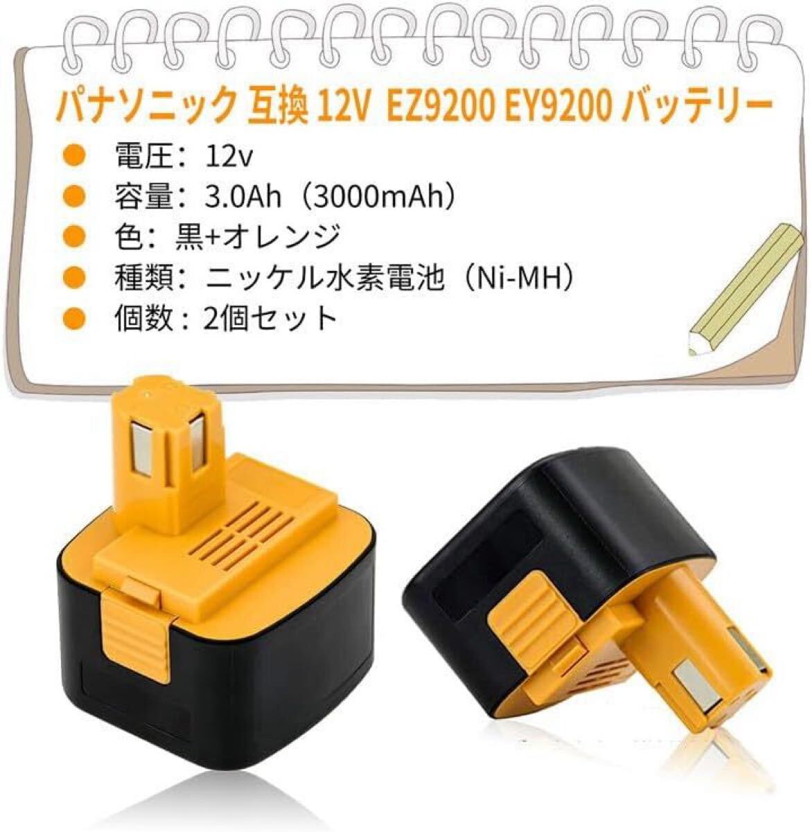 • パナソニック12v 互換バッテリー ezt901 ez9200 ez9200s ey9200 3.0Ah ニッケル水素電池  3000mAh 2個セット