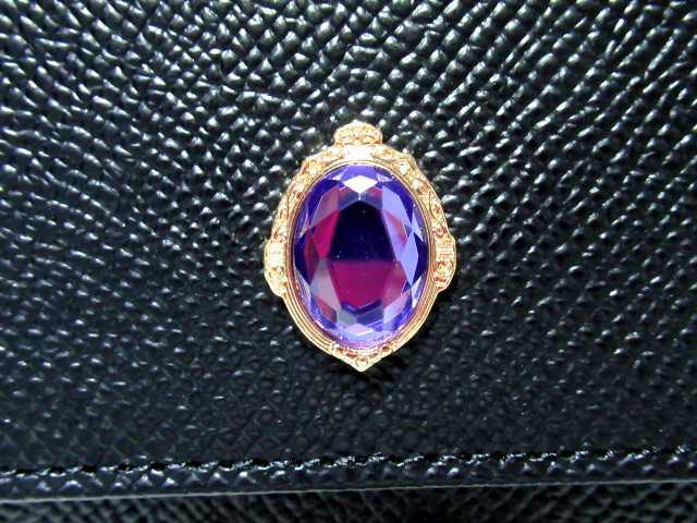 シンプルなブラックボディに鏡をモチーフにしたポムフィオーレ寮のイメージカラーの大きめビジュー付