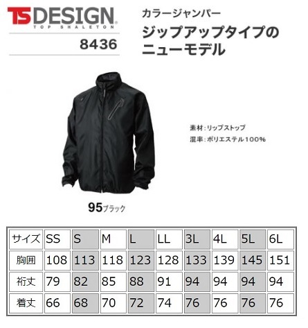 ビックイナバ特価◆TSDESIGN 8436 カラージャンパー【95ブラック・Sサイズ】撥水・防風、定価1枚5940円の品、即決1000円