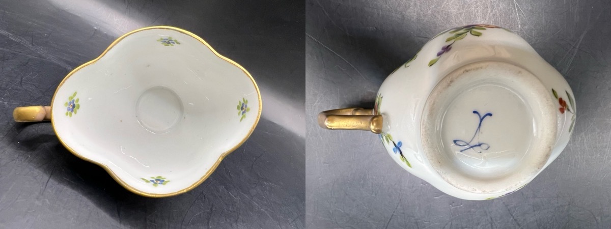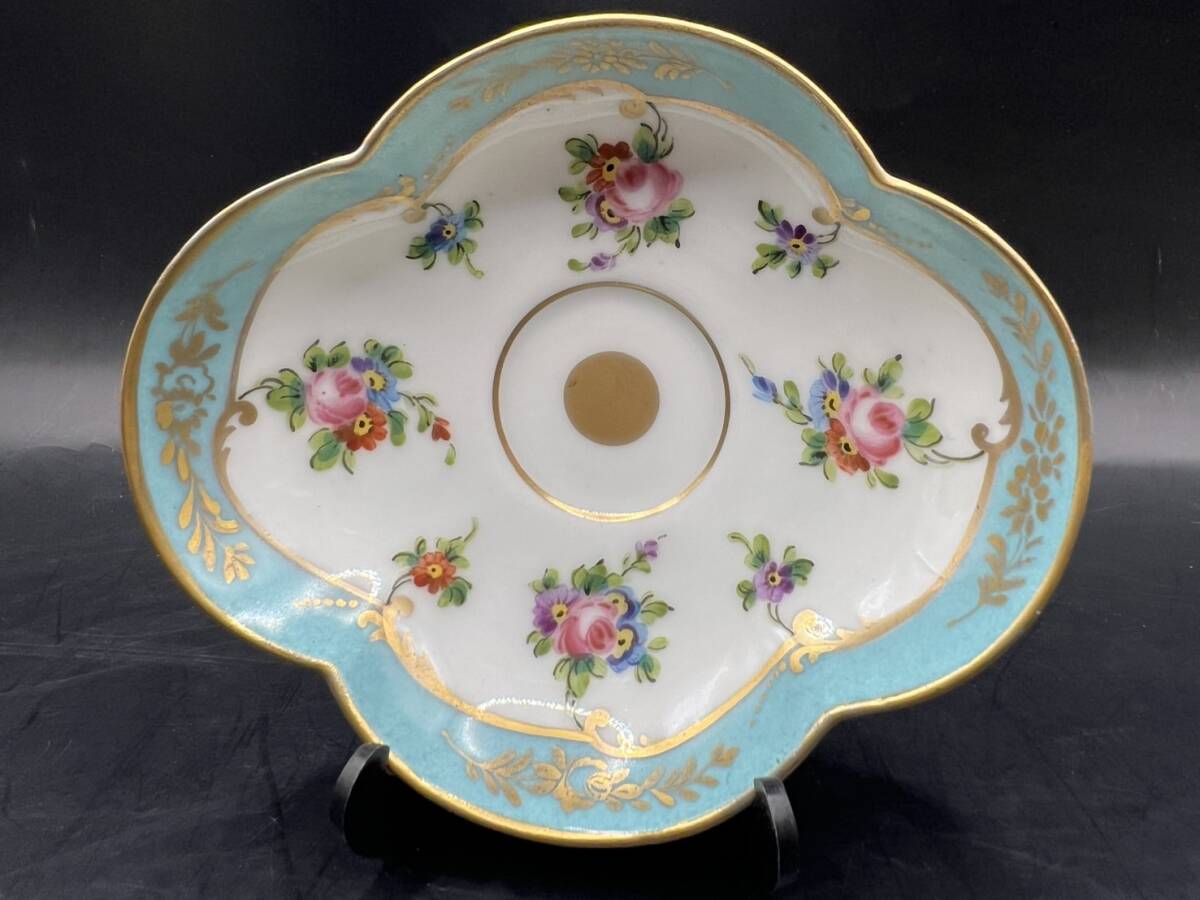 B)オールドセーブル 初期 ? カップ&ソーサー 花 ブルー 金彩 C10i