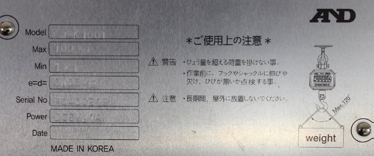 | □現状品□ AND エー・アンド・デイ FJ-K100i 防塵・防水クレーンスケール ※使用感少 簡易動作確認済み (2746709M) ■こちらは現状品となります ※使用感の少ない商品です ※簡易動作確認済み:手で引張りメモリ表示変化確認(校正未チェック) ・AND エー・アンド・デイ ・防塵・防水クレーンスケール ・最小表示:0.05kg ・ひょう量:100kg ・FJ-K100i >商品の概要はこちらをご覧ください ■外観 ・使用感の少ない商品でございます ■内容 ・写真に写っているものが全てです ※ご理解の上、ご入札お願いいたします。 |
