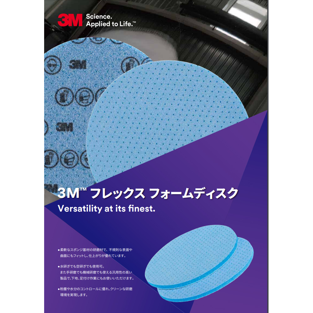 特長柔軟なスポンジ基材の研磨材で、不規則な表面や曲面にもフィットし、仕上がりが優れています。水研ぎでも空研ぎでも使用可。手研磨でも機械研磨でも使える汎用性の高い製品で、下地、足付け作業にもお使いいただけます。粉塵や水分のコントロールに優れ、クリーンな研磨環境を実現します。3Mフレックスディスクは、酸化アルミニウム砥粒をコーティングした柔軟な研磨材とスポンジ状基材を組み合わせた、高性能で多目的に使用できる研磨材です。詳細アタッチメントタイプ:フック&ループカラー:ブルーブランド:フッキット砥粒:酸化アルミニウム製品形状:ディスク直径:127 mm