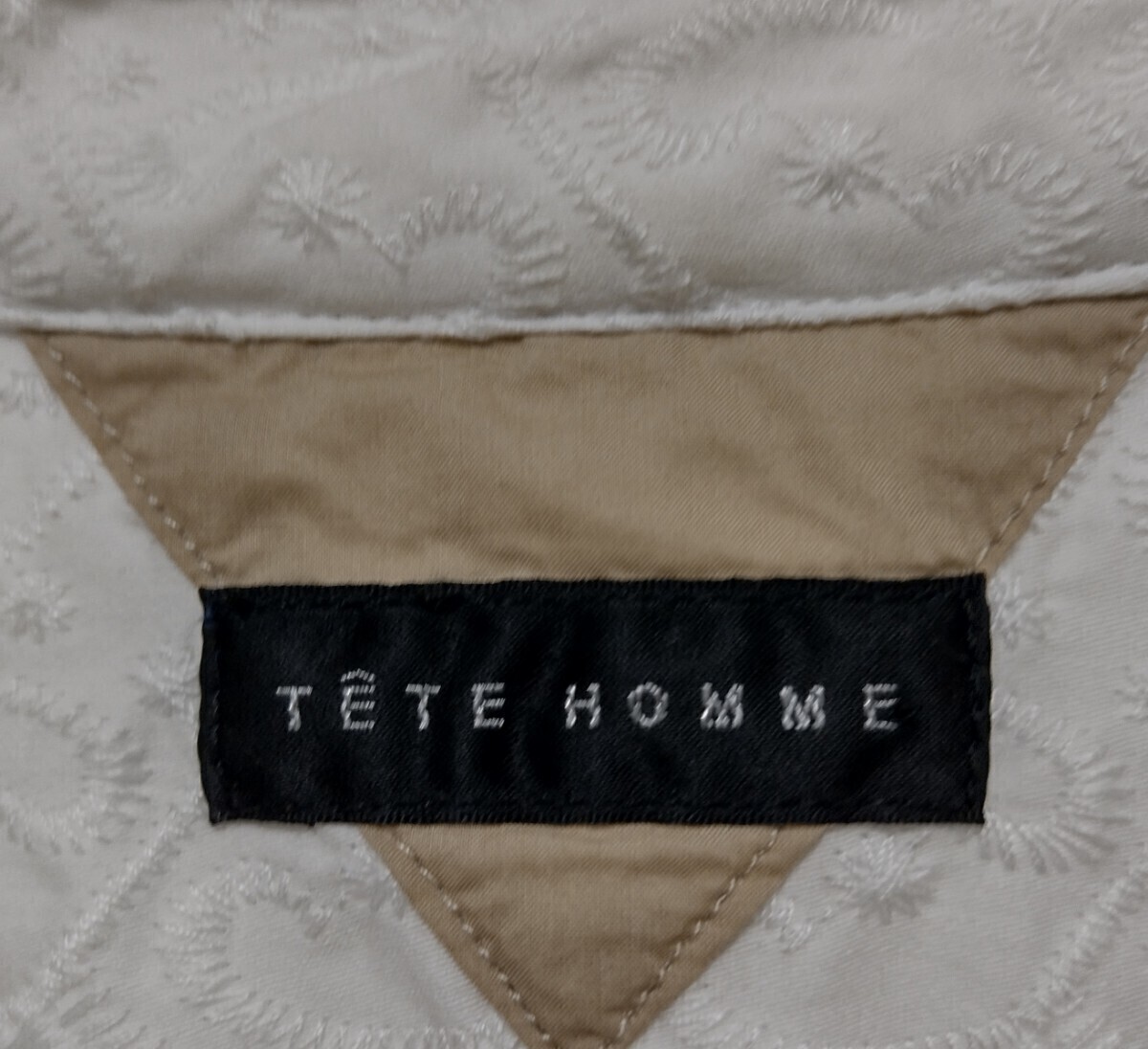 【芸術刺繍】TETE HOMME オープンカラー ボタンシャツ Mサイズ テットオム 長袖シャツ
