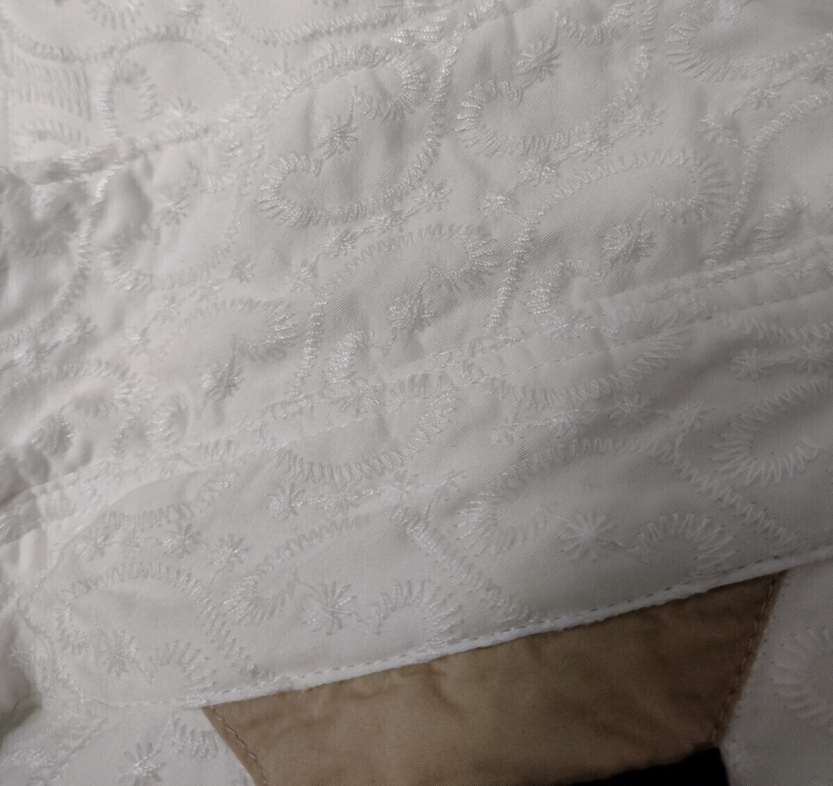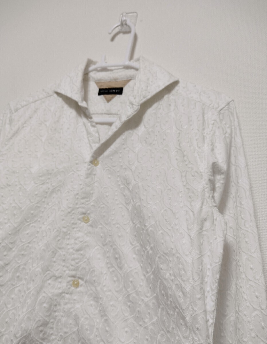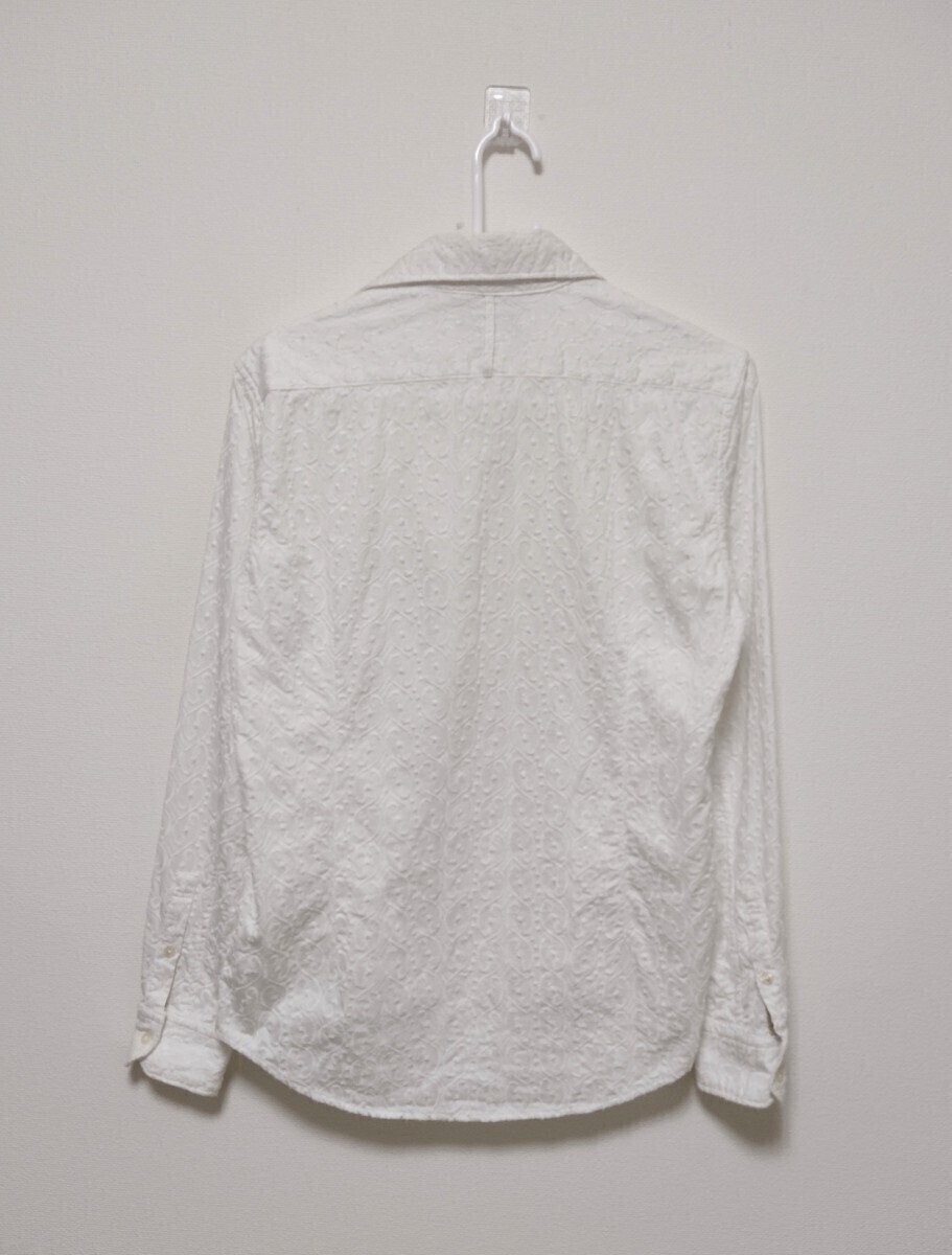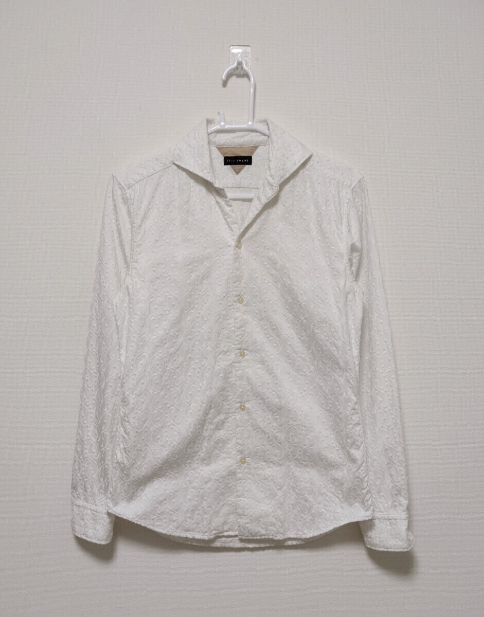 白のシャツに、白の糸で全面刺繍を施した珠玉の一枚。