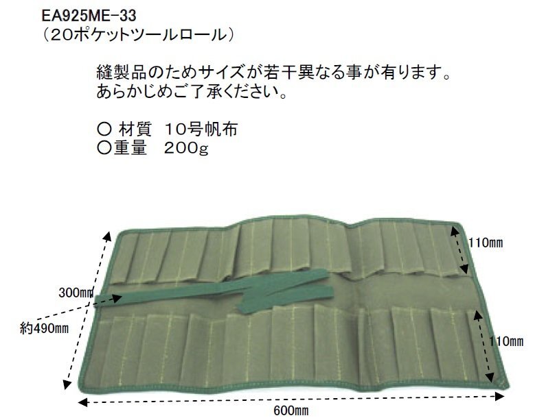 ESCO 300x600mm ツールロール (20ポケット) EA925ME-33 |