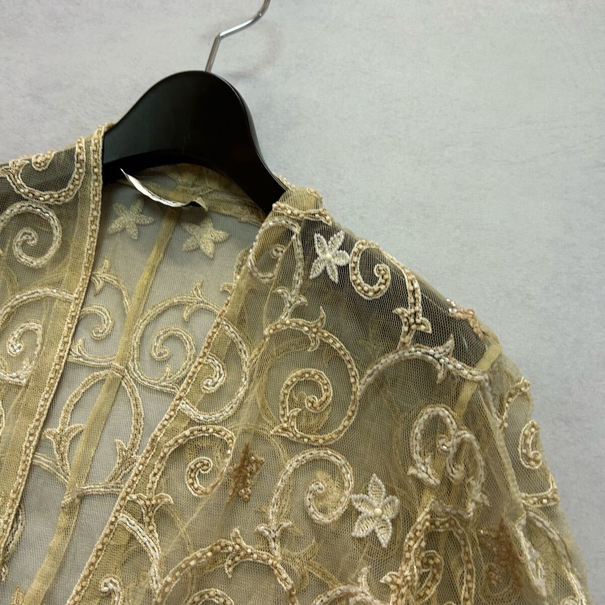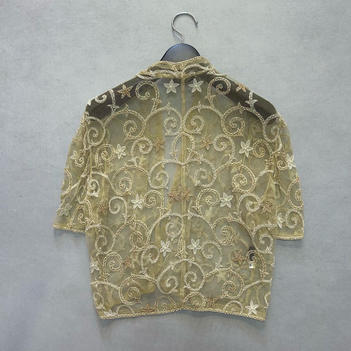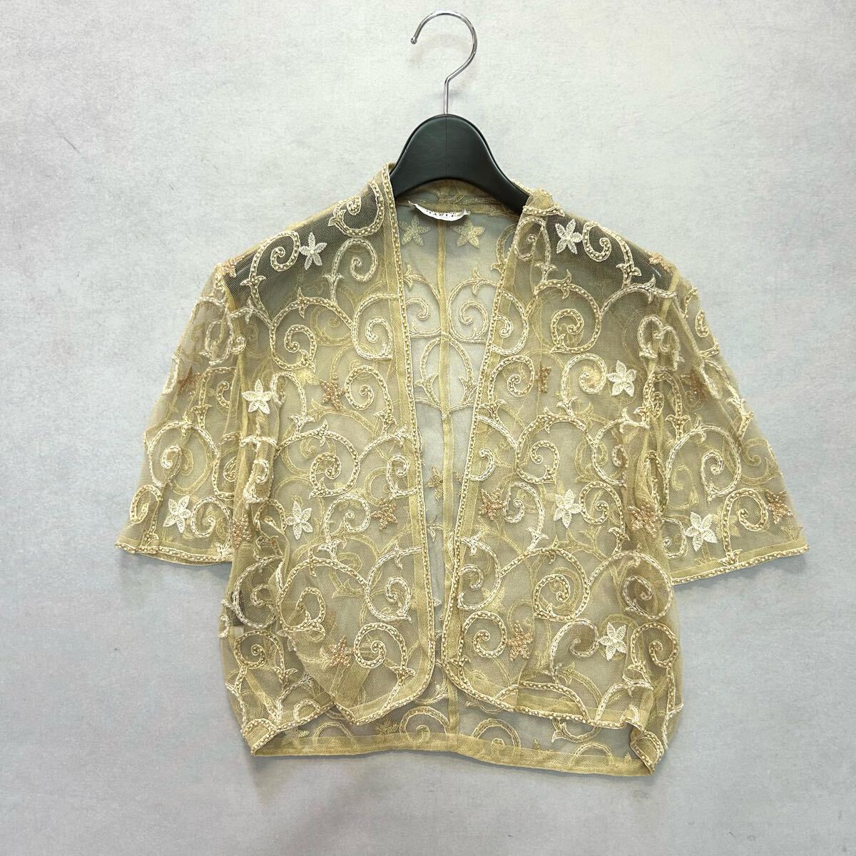 M■ 洗練されたデザイン '着心地抜群' CAROLINE CHARLES キャロラインチャールズ 半袖 レース スパンコール装飾 カーディガン 36 トップス