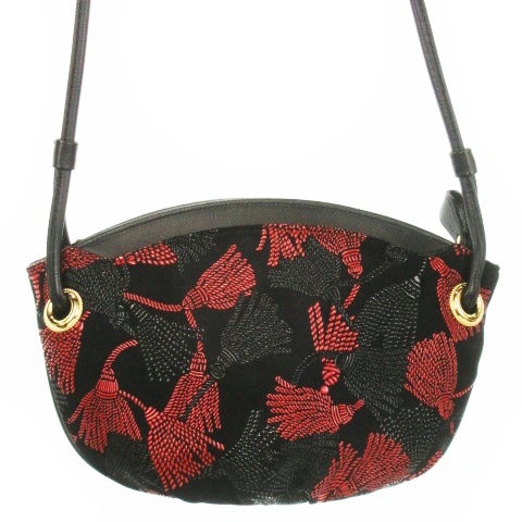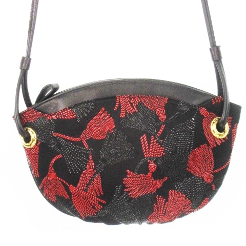 印傳屋 INDEN‐YA INDENYA Benessage ベネッセージ ショルダーバッグ レザー タッセル 総柄 黒 ブラック 赤 レッド /AH11 ■GY11
